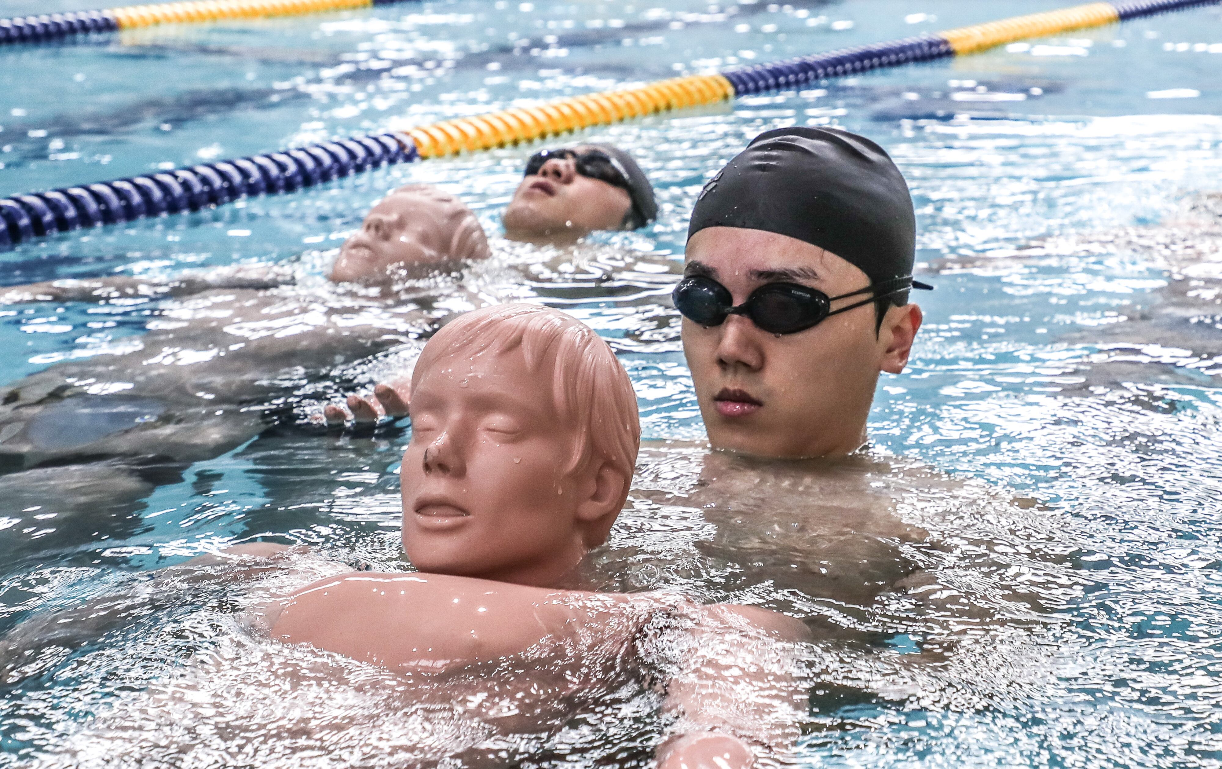 On October 7, 2024 special forces aspirants from Team “Angry Frog” are doing lifesaving training at the Sports Island Swimming Pool in Suwon, Gyeonggi Province, South Korea. (Photo by Go Woon-ho)