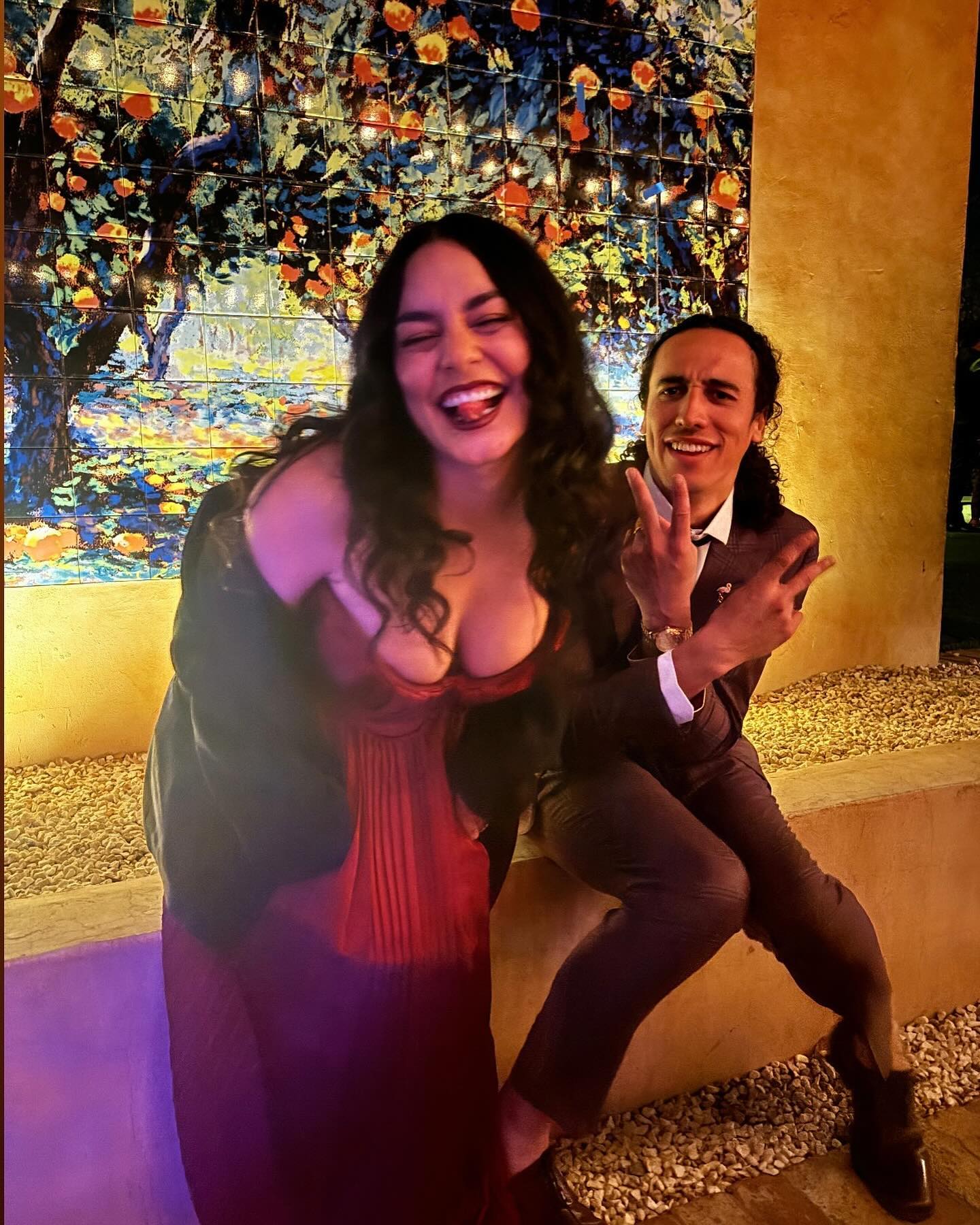 American actress and singer Vanessa Hudgens and American baseball shortstop Cole Tucker on November 24, 2024 snap a silly but glam selfie. (Photo by vanessahudgens/Instagram)