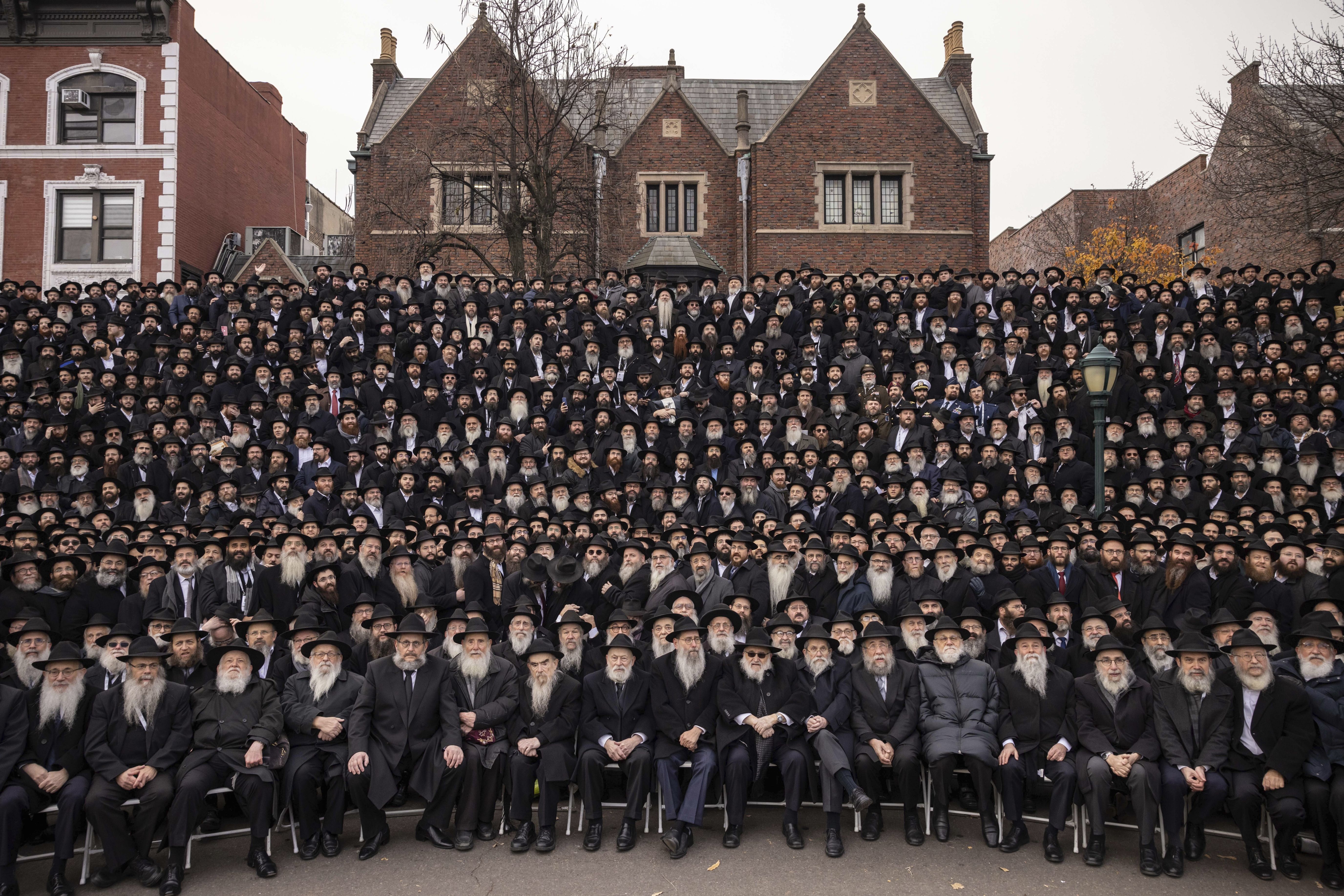 Hasidic Jewish rabbis gather for the annual group portrait outside Chabad-Lubavitch Worldwide Headquarters in the Brooklyn borough of New York, December 1 2024. (Photo by Yuki Iwamura/AP Photo)