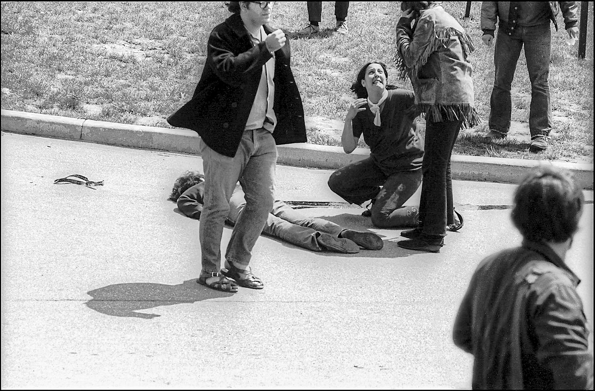 As others call for help, teenager Mary Ann Vecchio (center) kneels beside the body of Kent State University student Jeffrey Miller (1950 - 1970) who had been shot during an anti-war demonstration on the university campus, Kent, Ohio, May 4, 1970. The protests, initially over the US invasion of Cambodia, resulted in the deaths of four protesters, including Miller, and the injuries of nine others after the National Guard opened fire on students. (Photo by Howard Ruffner/Getty Images)