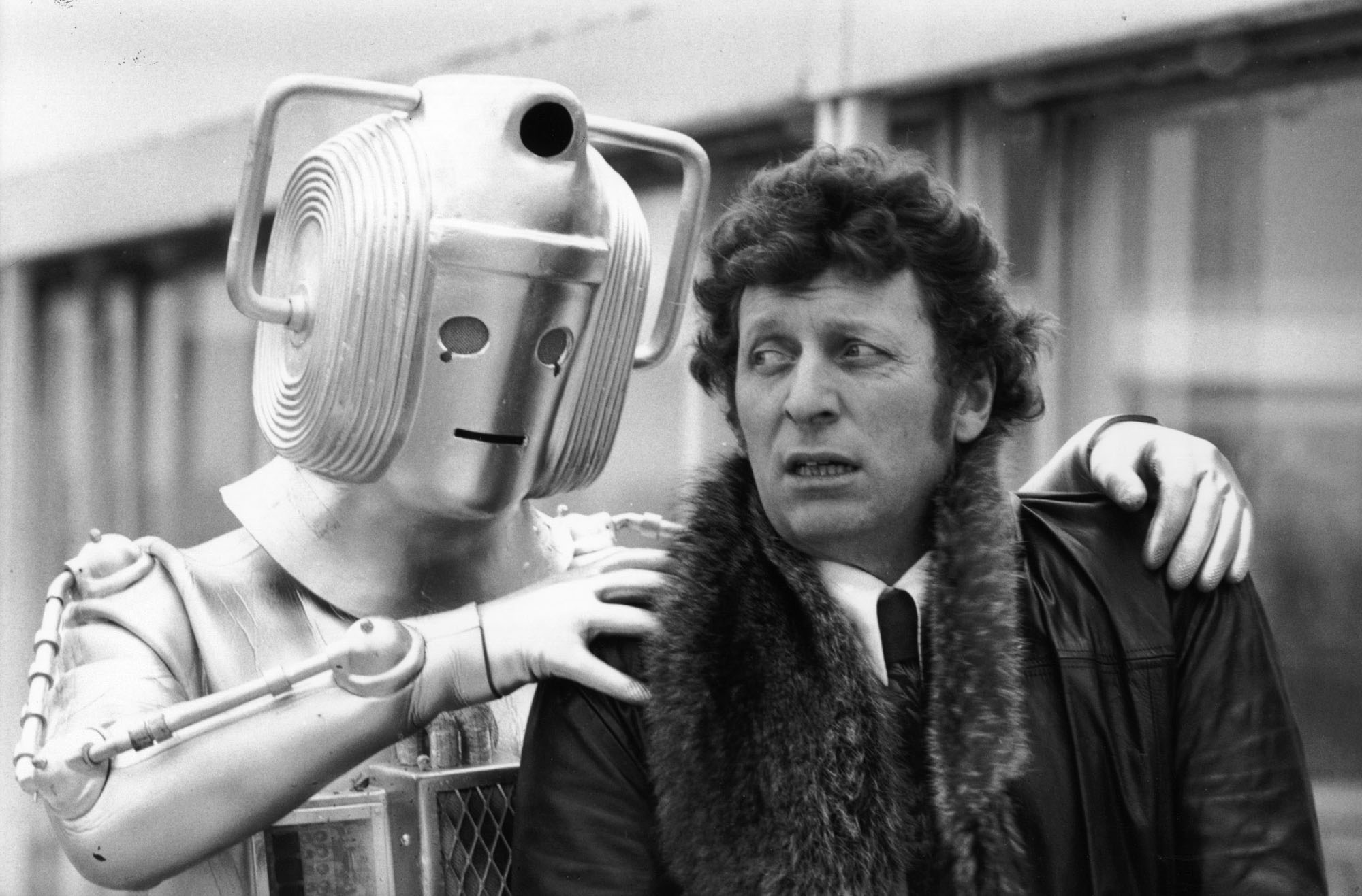 Tom Baker, the actor who portrayed the fourth incarnation of the Doctor in the sci-fi television series “Doctor Who”, meets one of the show's creatures in a 1974 publicity shot..(Photo by Frank Barratt/Getty Images)