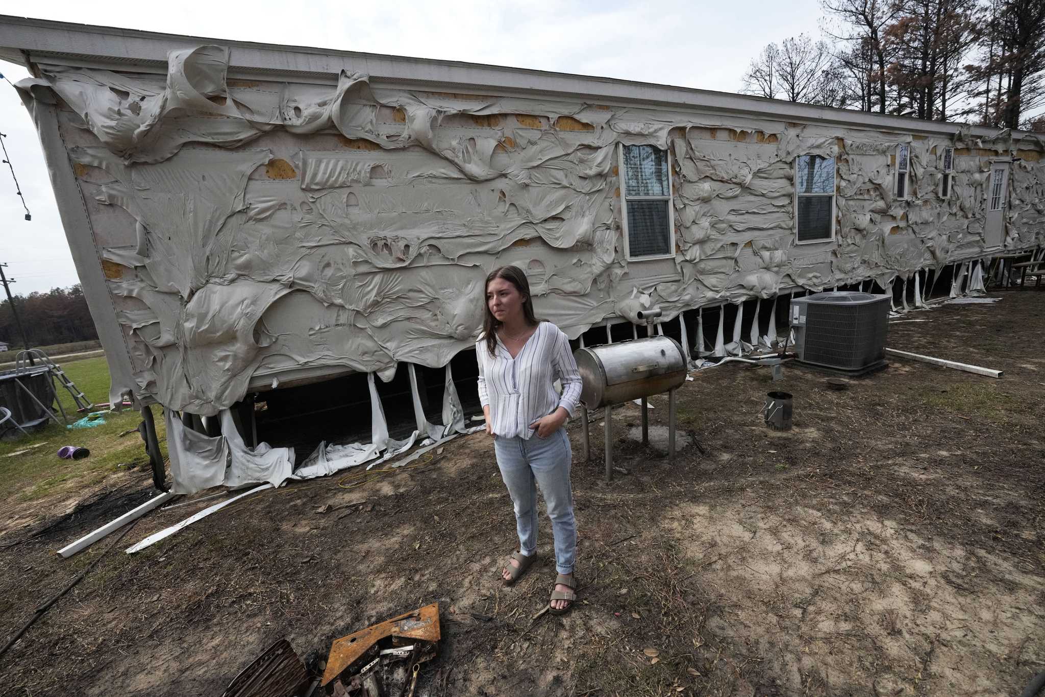 Lindsay Bustamante shows the damage to her home in the aftermath of a wildfire in Evans, La., Wednesday, September 13, 2023. (Photo by Gerald Herbert/AP Photo)