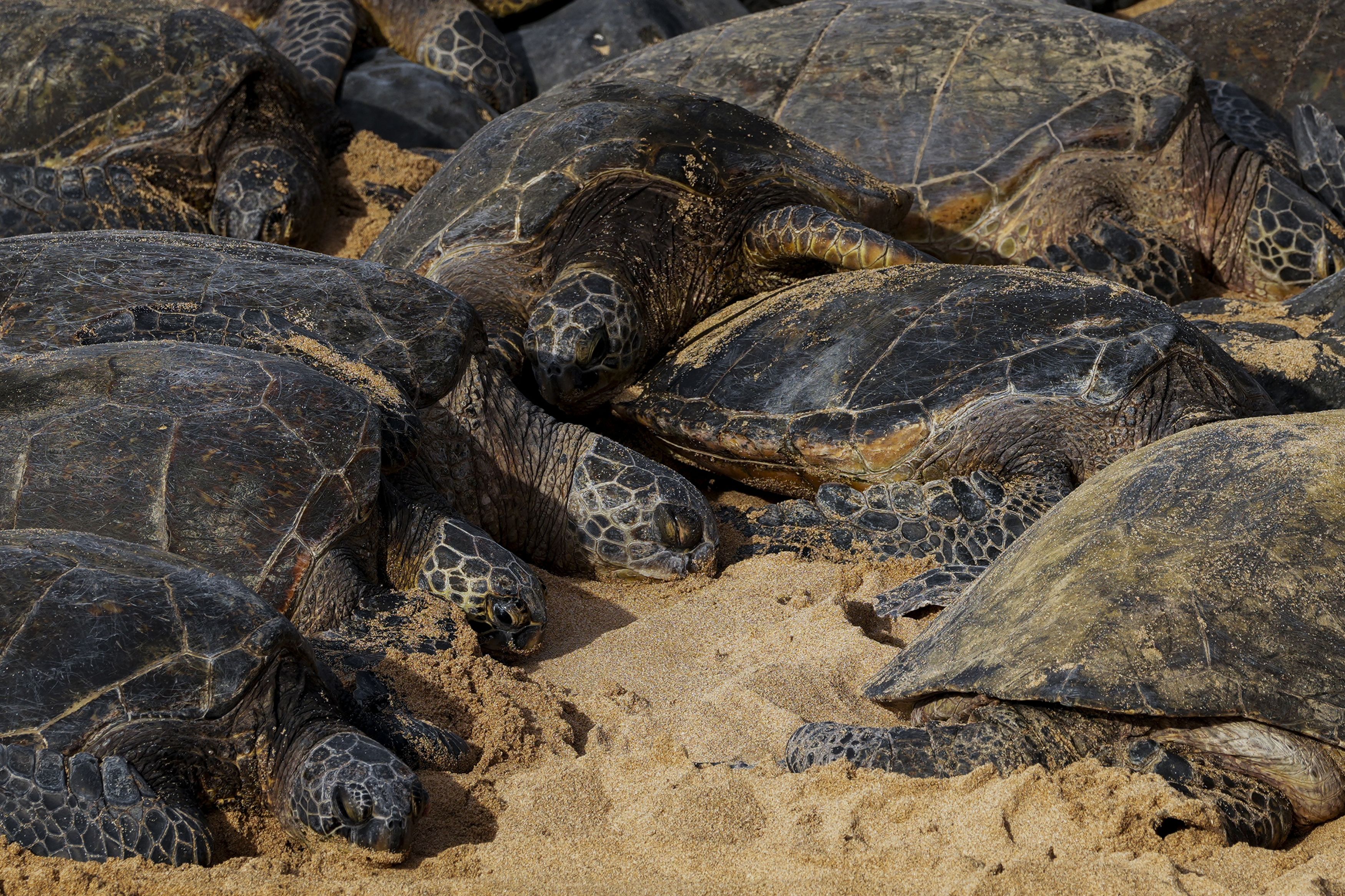 Turtles bask in the sun at the Ho'okipa Beach Park near Paia, Hawaii, on Friday, November 22, 2024. (Photo by Lindsey Wasson/AP Photo)