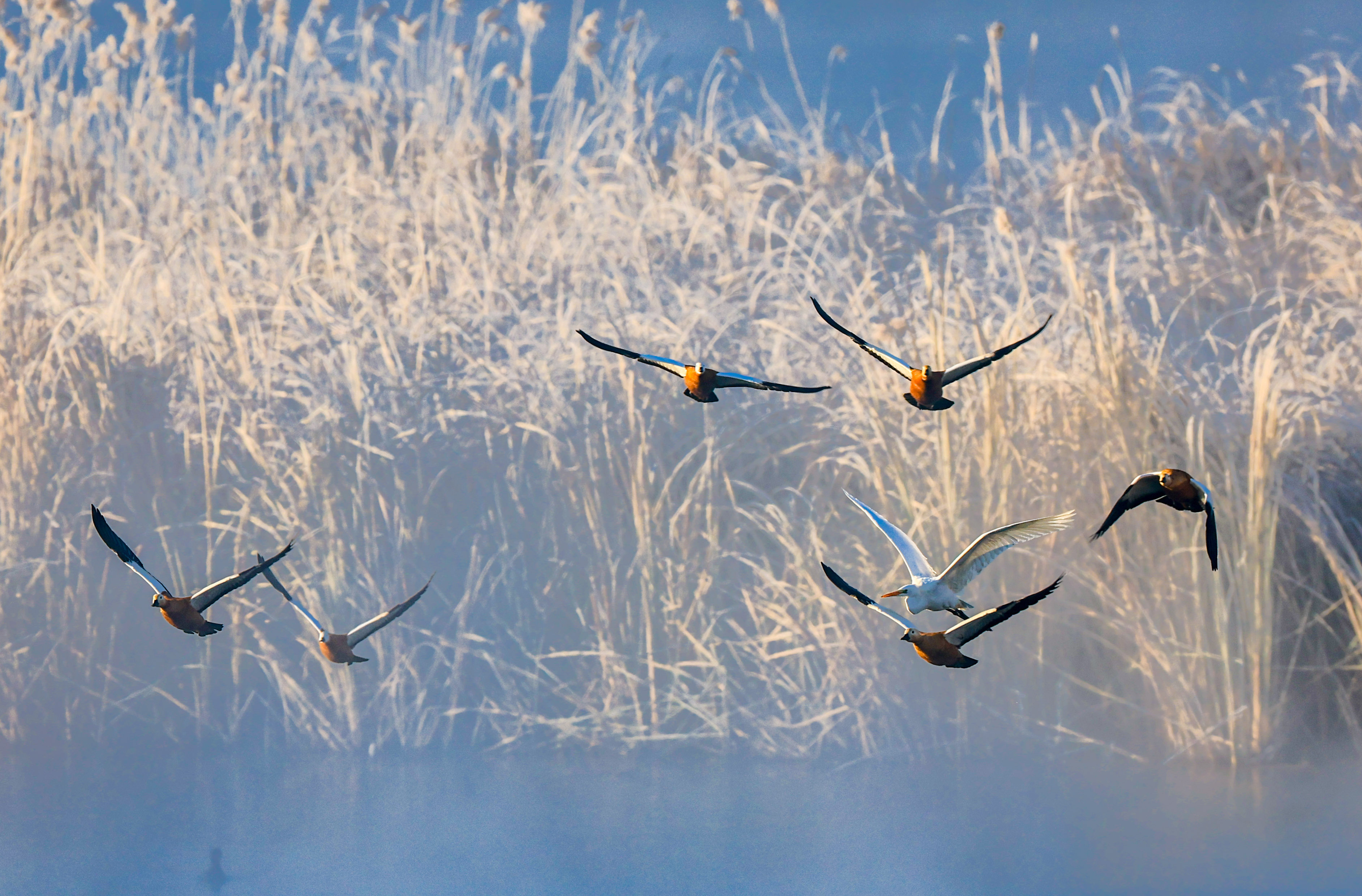 Migratory birds fly at Qiandao Lake scenic spot in Daheihe Country Park in Hohhot, Inner Mongolia, China, on December 5, 2024. (Photo by Costfoto/NurPhoto/Rex Features/Shutterstock)