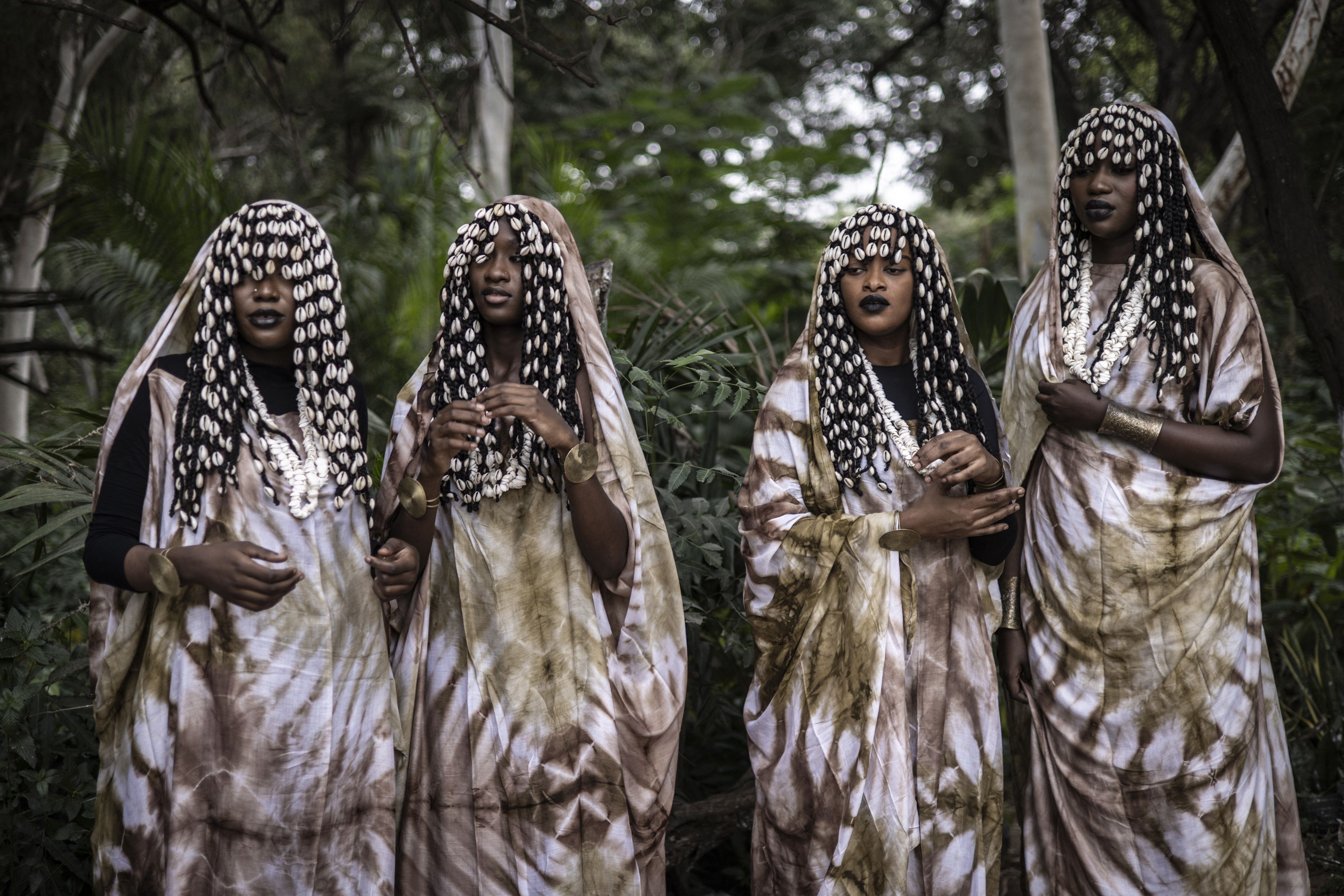 Models gather ahead of the final show of Dakar Fashion Week at Parc Hann, Dakar, December 7, 2024. (Photo by John Wessels/AFP Photo)