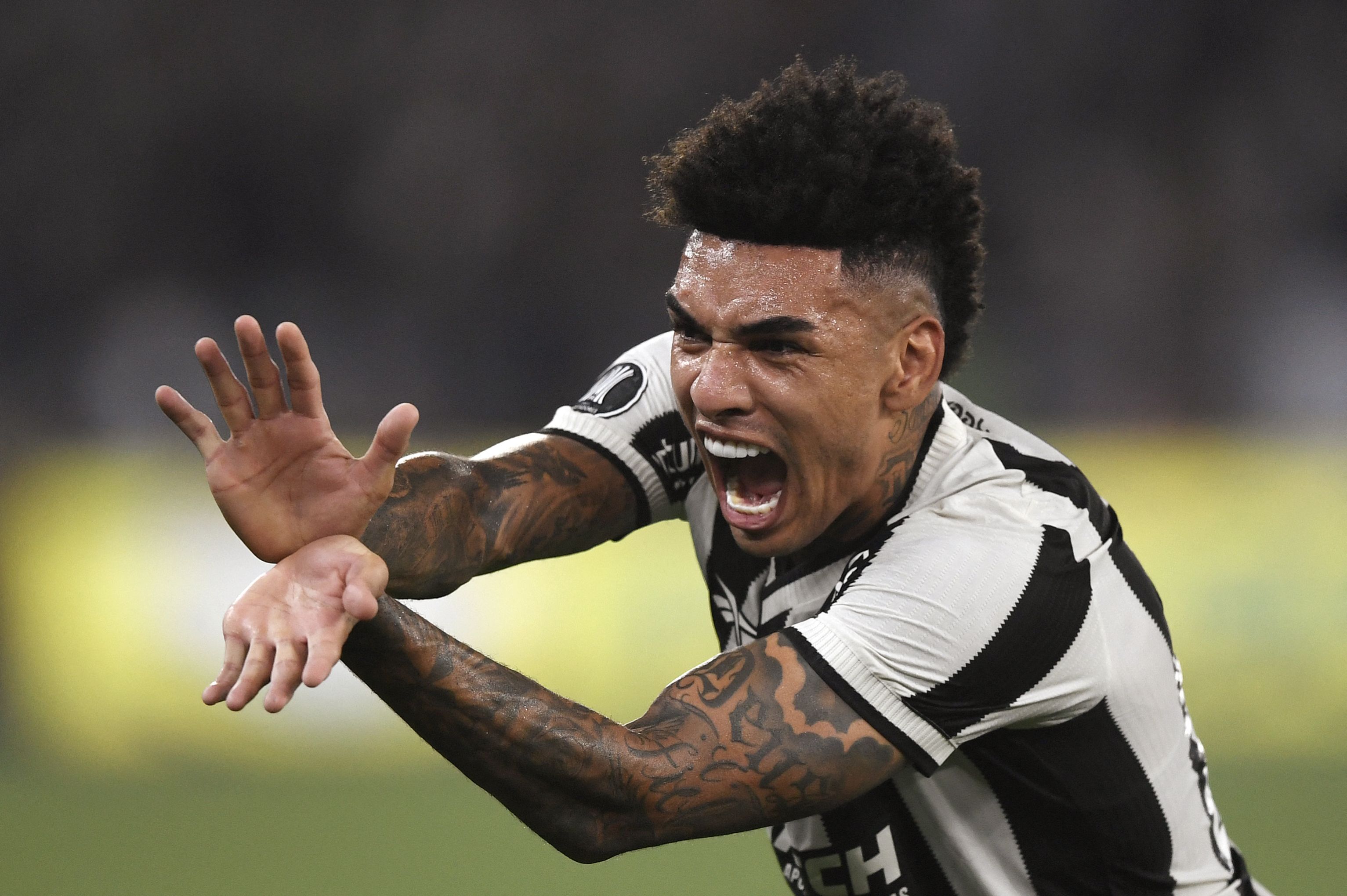 Botafogo's forward #99 Igor Jesus celebrates scoring his team's fifth goal during the Copa Libertadores semi-final first leg football match between Brazil's Botafogo and Uruguay's Peñarol at the Olimpico Nilton Santos stadium in Rio de Janeiro, Brazil, on October 23, 2024. (Photo by Daniel Ramalho/AFP Photo)
