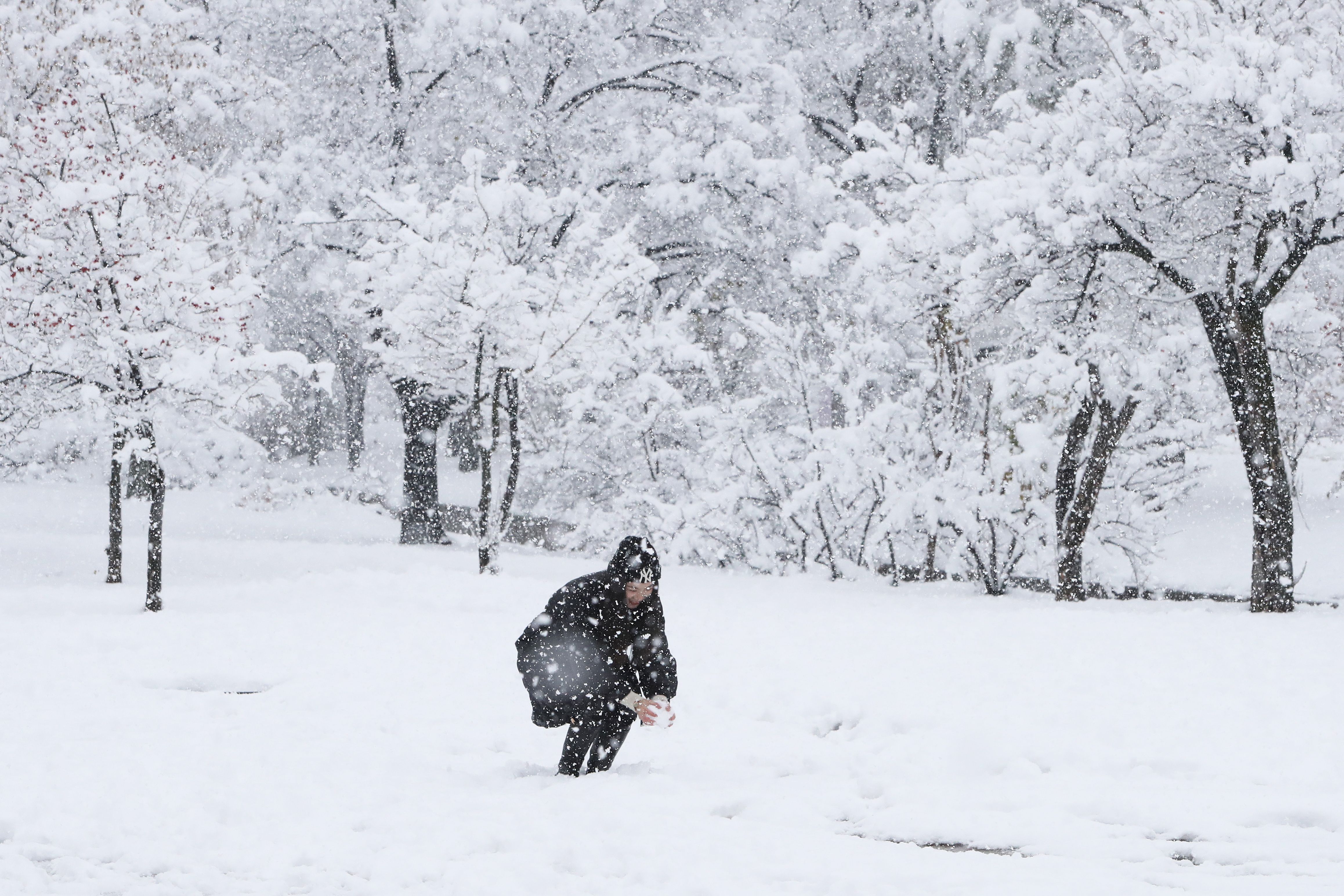 A woman enjoys the snow at the Gyeongbok Palace on November 27, 2024 in Seoul, South Korea. According to the state weather agency, more than 16 centimeters of snow blanketed capital city Seoul on Wednesday, marking the biggest snowfall in November since modern weather observations began in 1907. (Photo by Chung Sung-Jun/Getty Images)