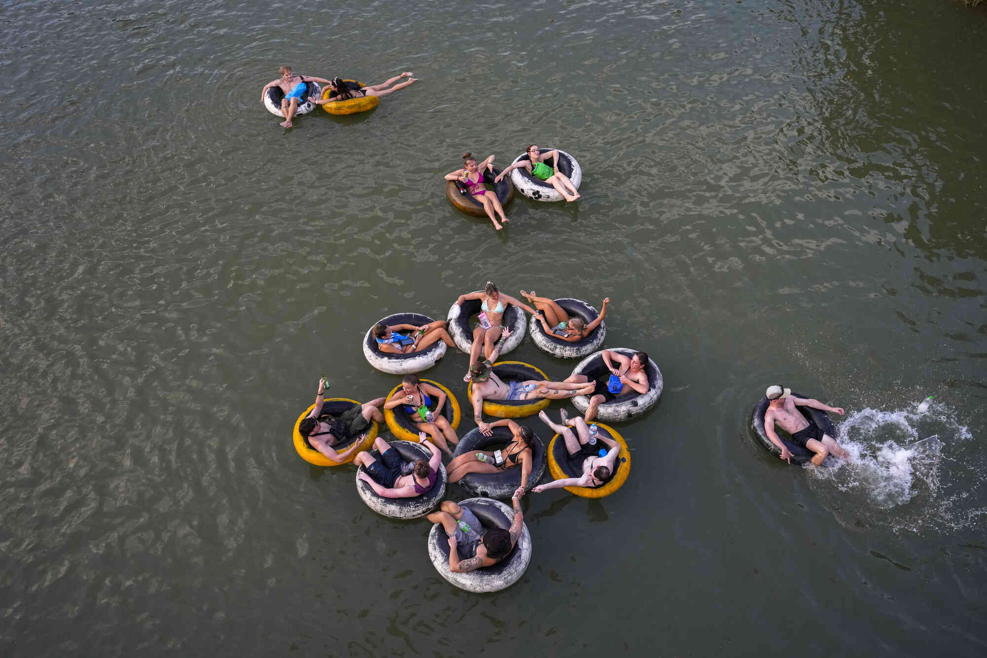 Foreign tourists float on tubes in a river in Vang Vieng, Laos, Tuesday, November 19, 2024. (Photo by Anupam Nath/AP Photo)
