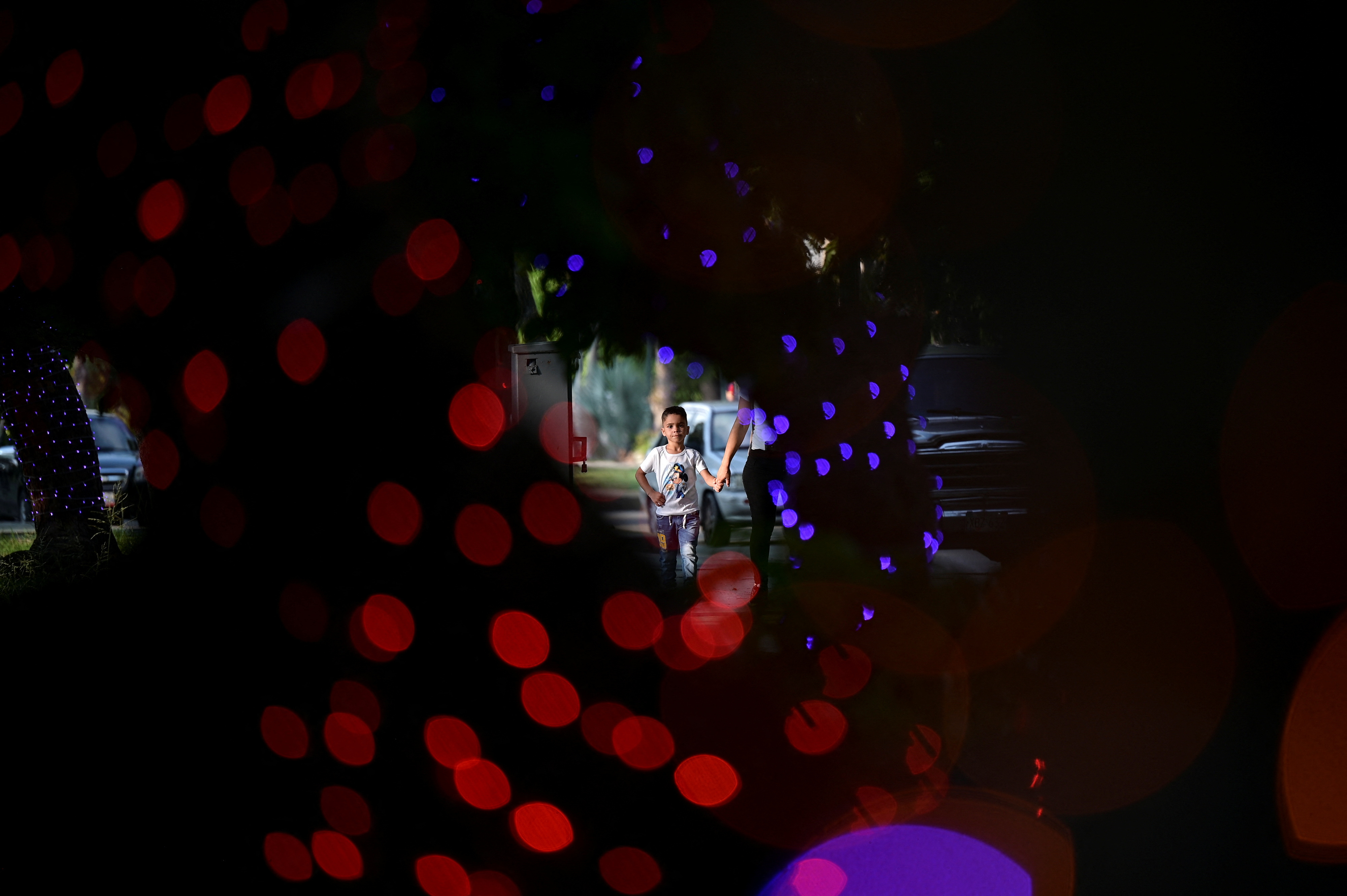 A boy walks by trees decorated with Christmas lights, as the Christmas season kicks off as per a decree of Venezuela's President Nicolas Maduro, in Caracas, Venezuela on October 1, 2024. (Photo by Gaby Oraa/Reuters)