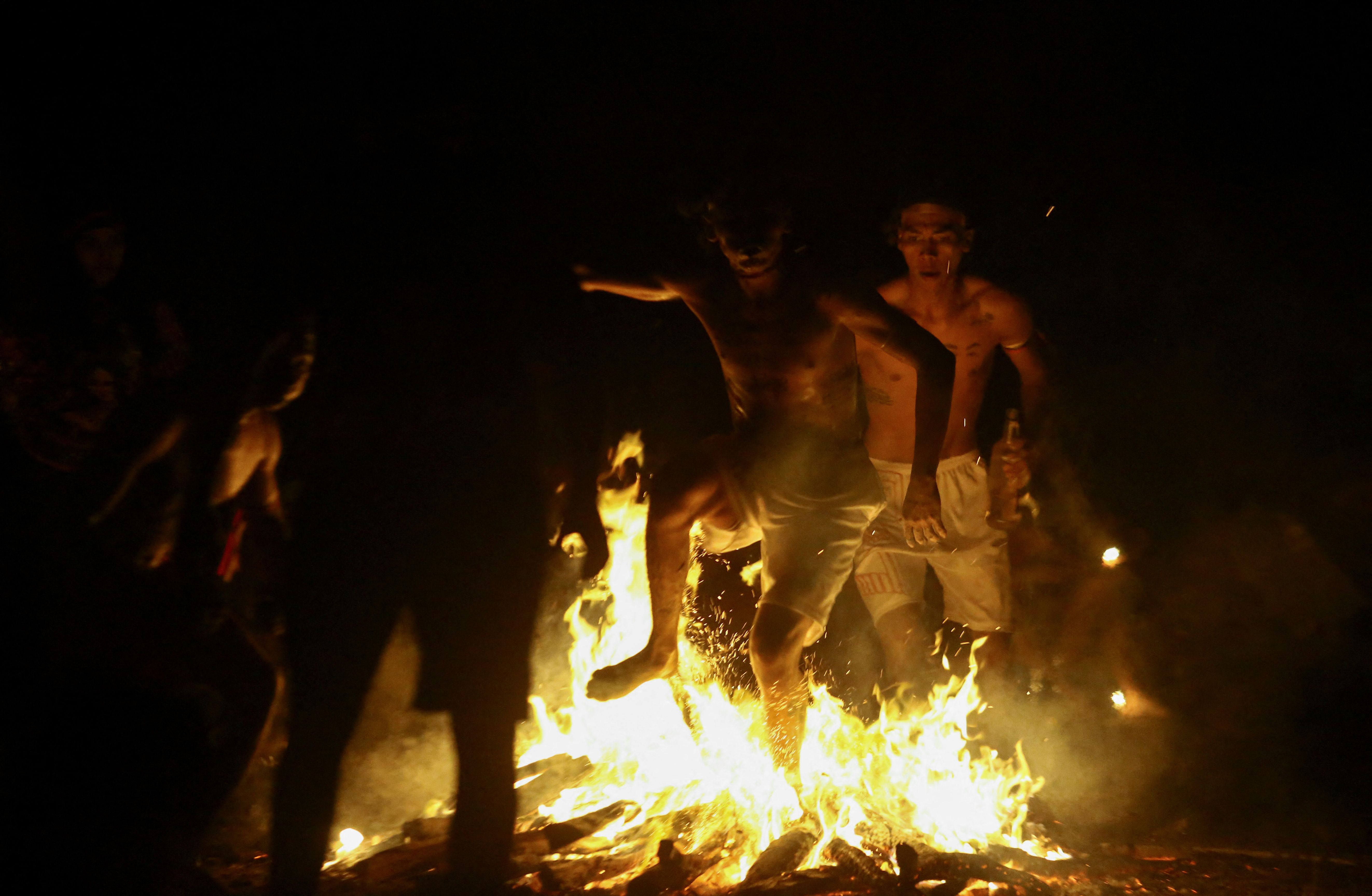 Followers of the goddess Maria Lionza run through burning embers during a spiritual ritual that combines Indigenous, Catholic and African beliefs, in Quibayo, Venezuela on October 12, 2024. (Photo by Juan Carlos Hernandez/Reuters)