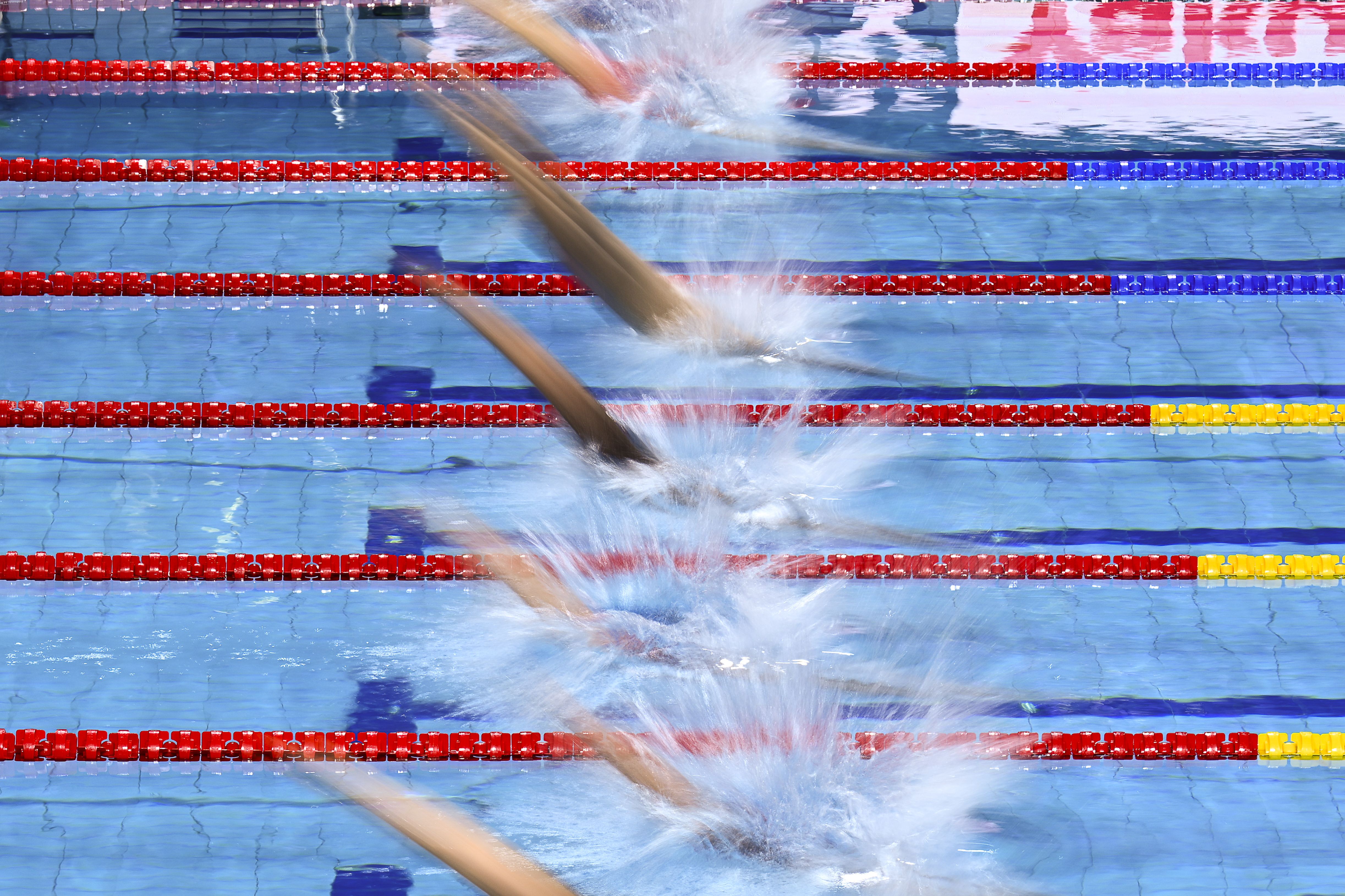 Athletes compete in the Men's 200m Butterfly Heats on day three of the World Short Course Swimming Championships in Budapest, Hungary, Thursday, December 12, 2024. (Photo by Denes Erdos/AP Photo)