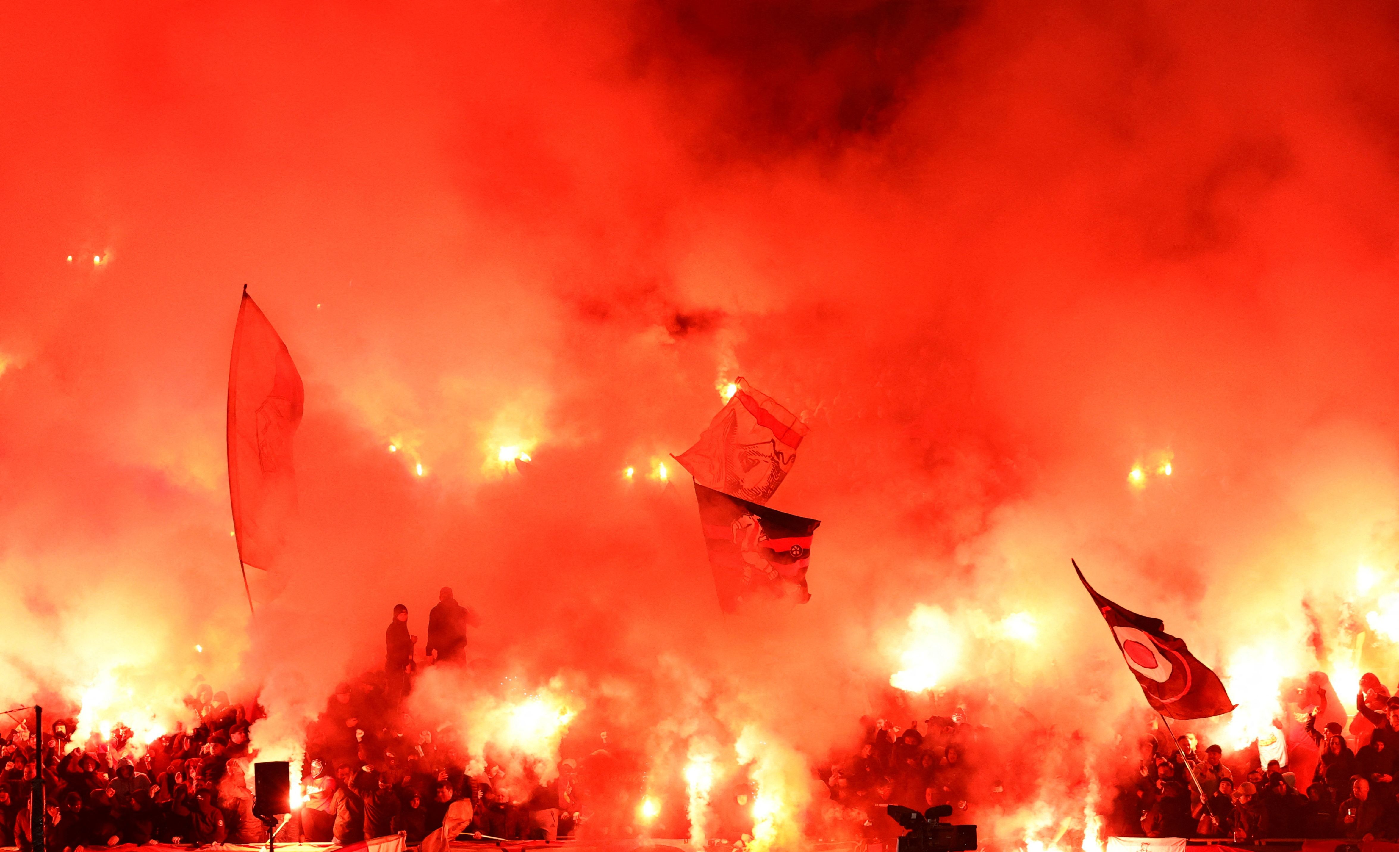 Ajax fans light flares before their team’s Europa League match against Lazio at the Johan Cruyff Arena in Amsterdam on December 12, 2024. (Photo by Piroschka Van De Wouw/Reuters)