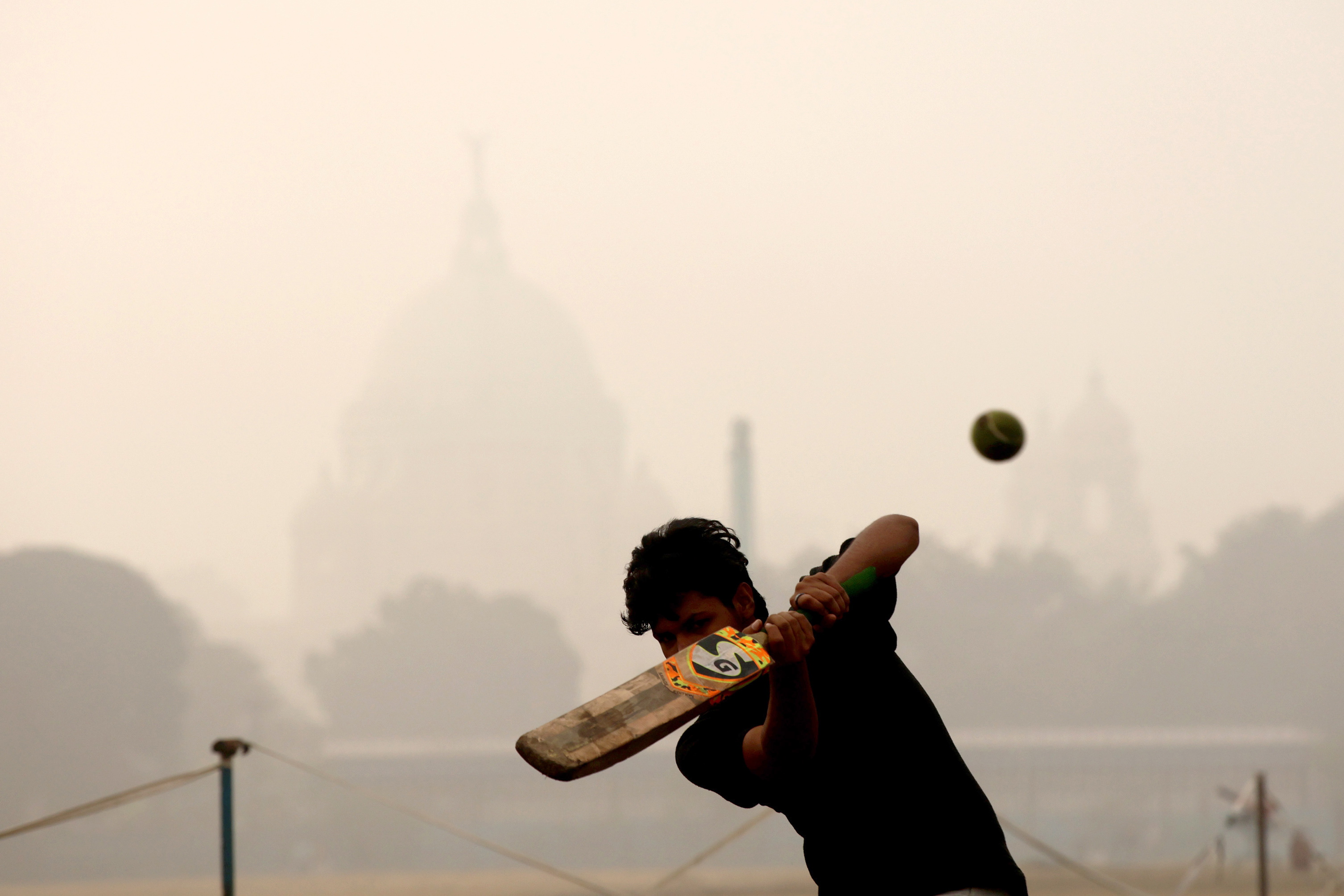 A man plays cricket in Kolkata, eastern India, 11 December 2024. The state of Bengal is set to implement Graded Response Action Plan (GRAP) in six cities, including Kolkata, to battle the effect of air pollution. (Photo by Piyal Adhikary/EPA)