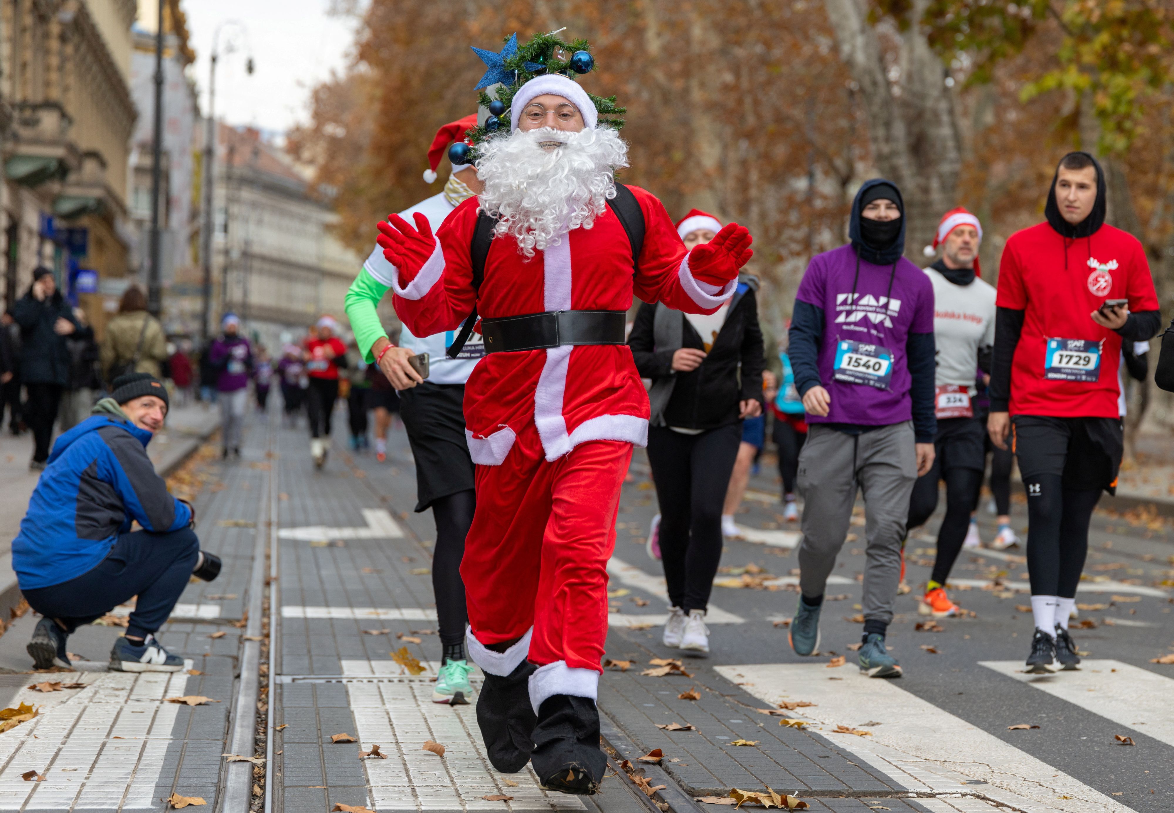 Runners wearing Santa Claus-themed outfits take part in the “Advent run” in Zagreb, Croatia on December 8, 2024. (Photo by Antonio Bronic/Reuters)