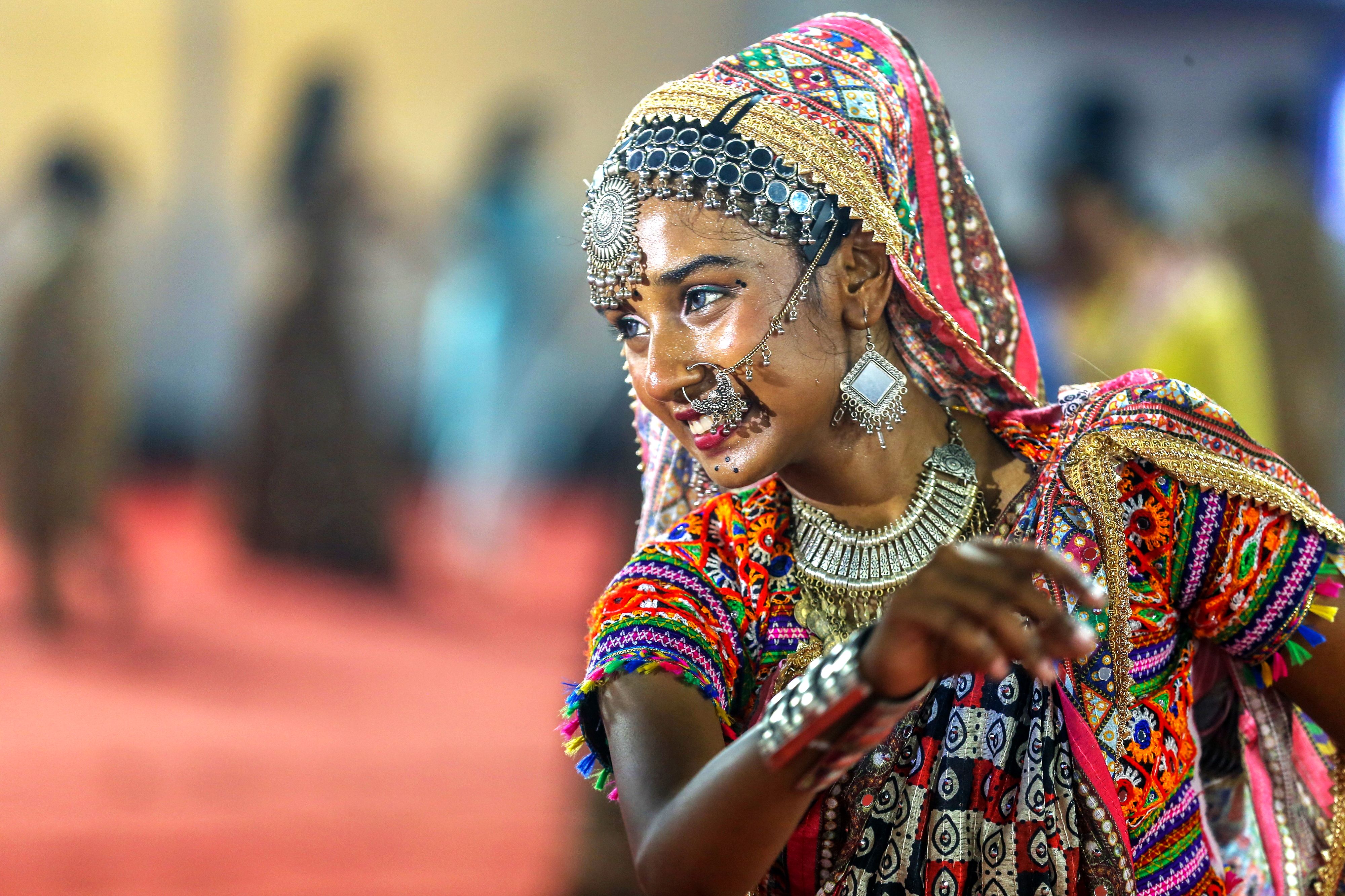 A young woman wearing traditional attire participates in a Garba dance performance during Navaratri festival celebrations in Mumbai, India, 16 October 2023. The word Navaratri literally means “nine nights” in Sanskrit. During Navaratri, nine forms of Durga (Hindu Mother Goddess) are worshiped. Navaratri is a festival of worship, dance and music celebrated over a period of nine nights, the tenth day is commonly referred as Vijayadashami or Dussehra. (Photo by Divyakant Solanki/EPA)
