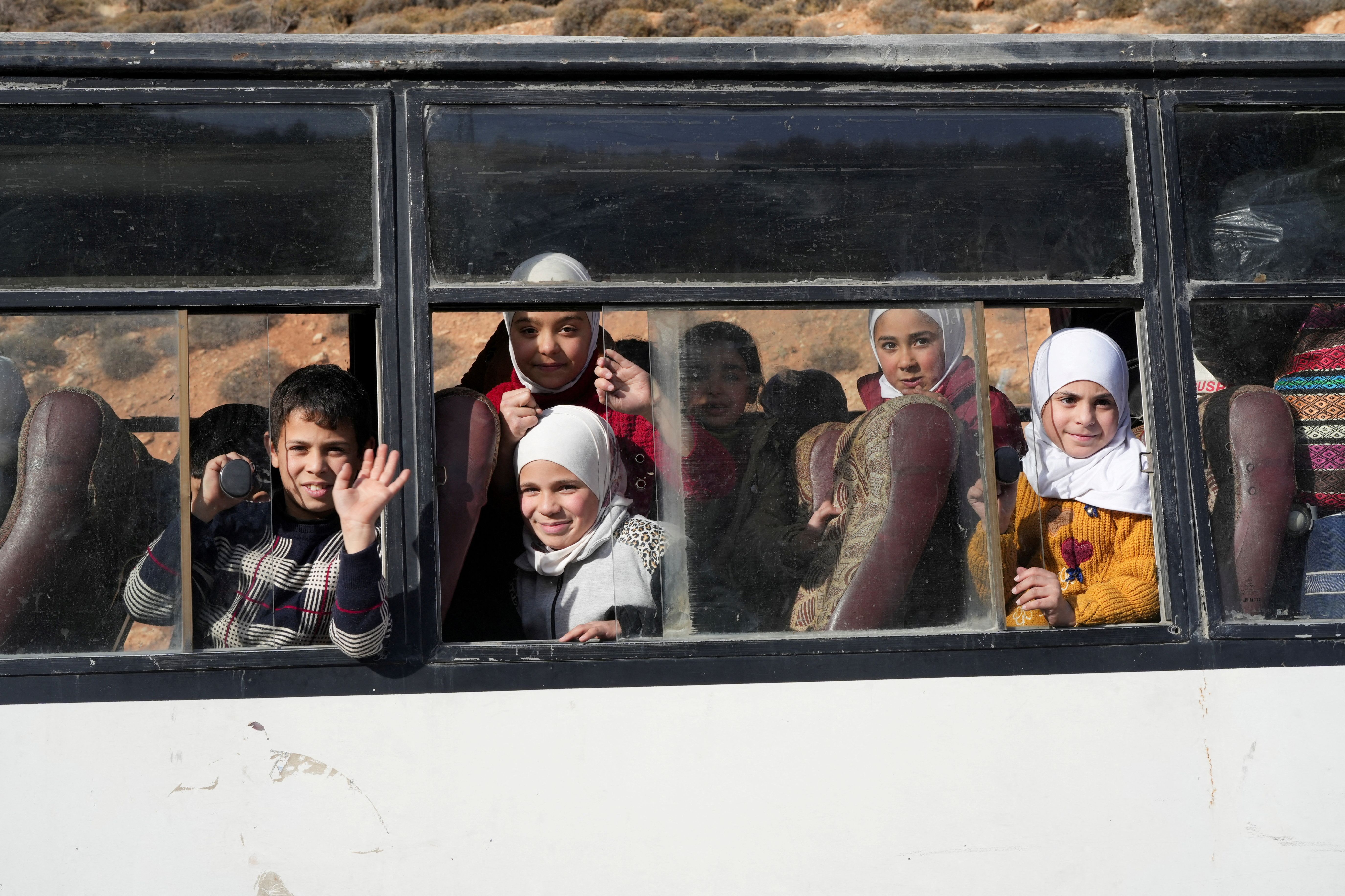 Children sit in a vehicle as they attempt to cross into Lebanon at the Masnaa border crossing between the Lebanon and Syria, after Syrian rebels announced that they have ousted Syria's Bashar al-Assad, as pictured from the Syrian side on December 9, 2024. (Photo by Mohammed Yassin/Reuters)