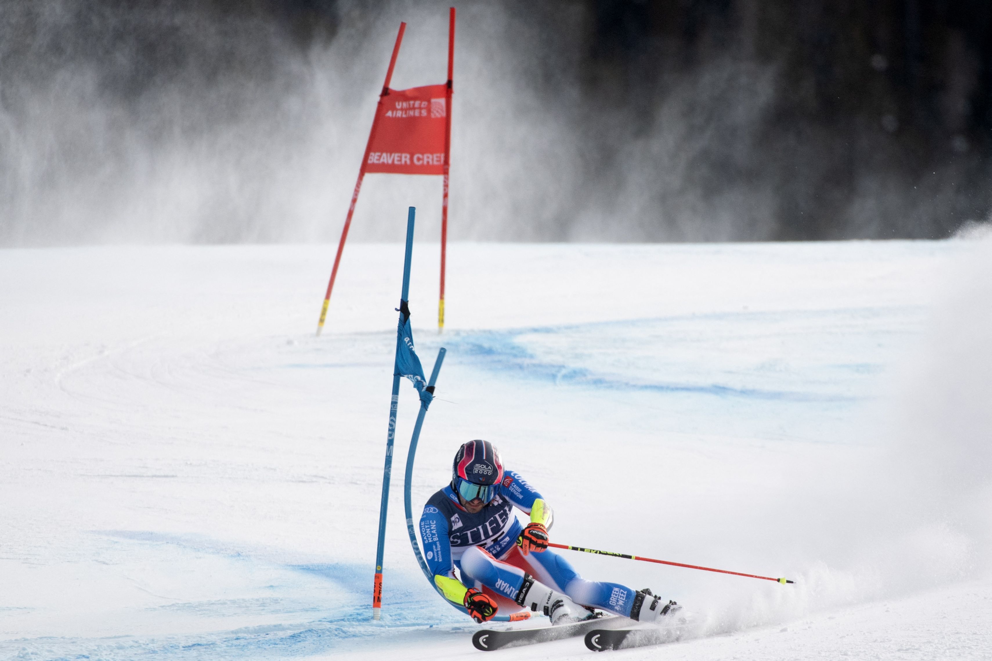 Mathieu Faivre of France races in run one of the Audi FIS Alpine Ski World Cup Men's Giant Slalom race in Beaver Creek, Colorado, on December 8, 2024. (Photo by Jason Connolly/AFP Photo)