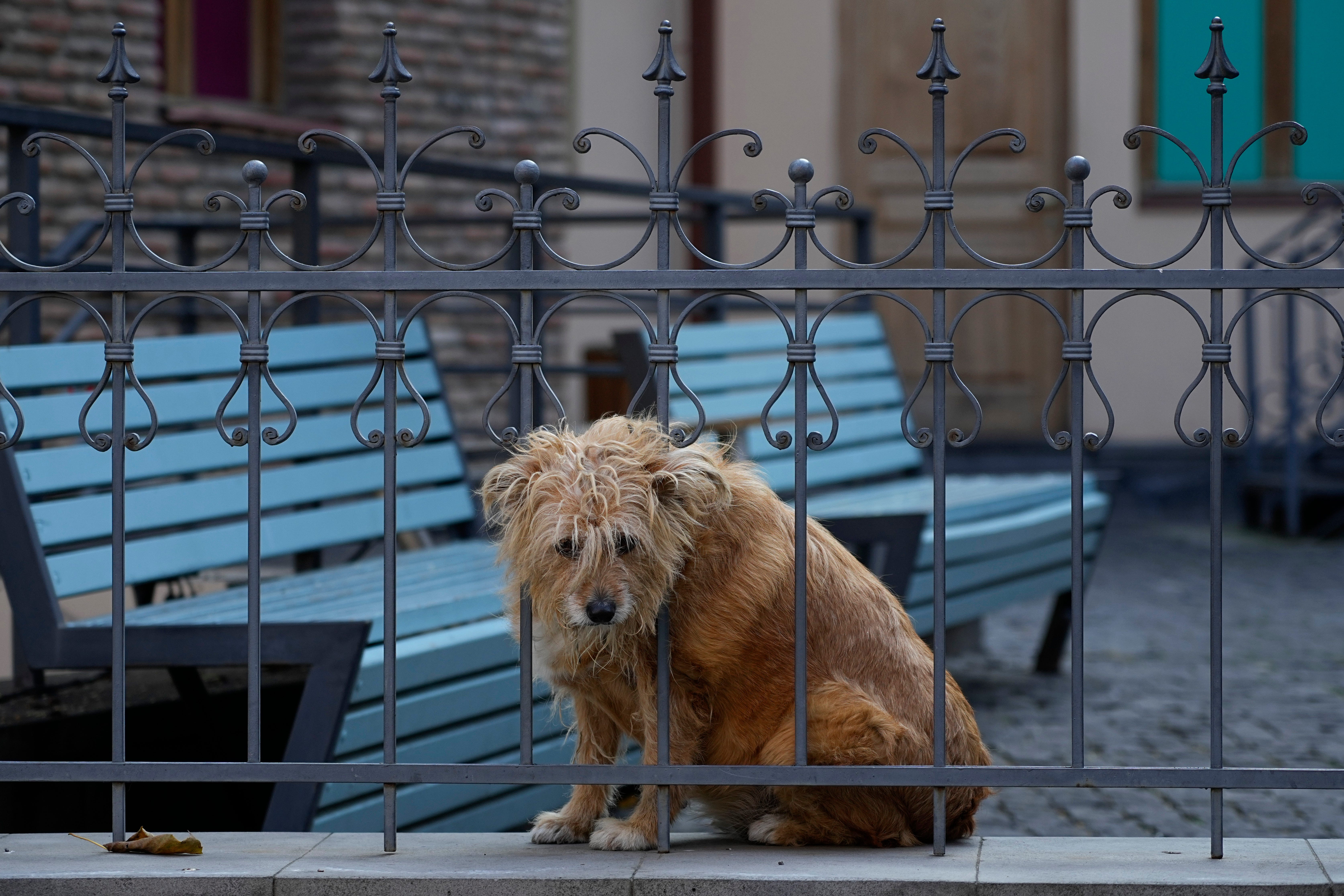 A dog sits behind a forged fence in Tbilisi, Georgia, Monday, December 9, 2024. (Photo by Pavel Bednyakov/AP Photo)