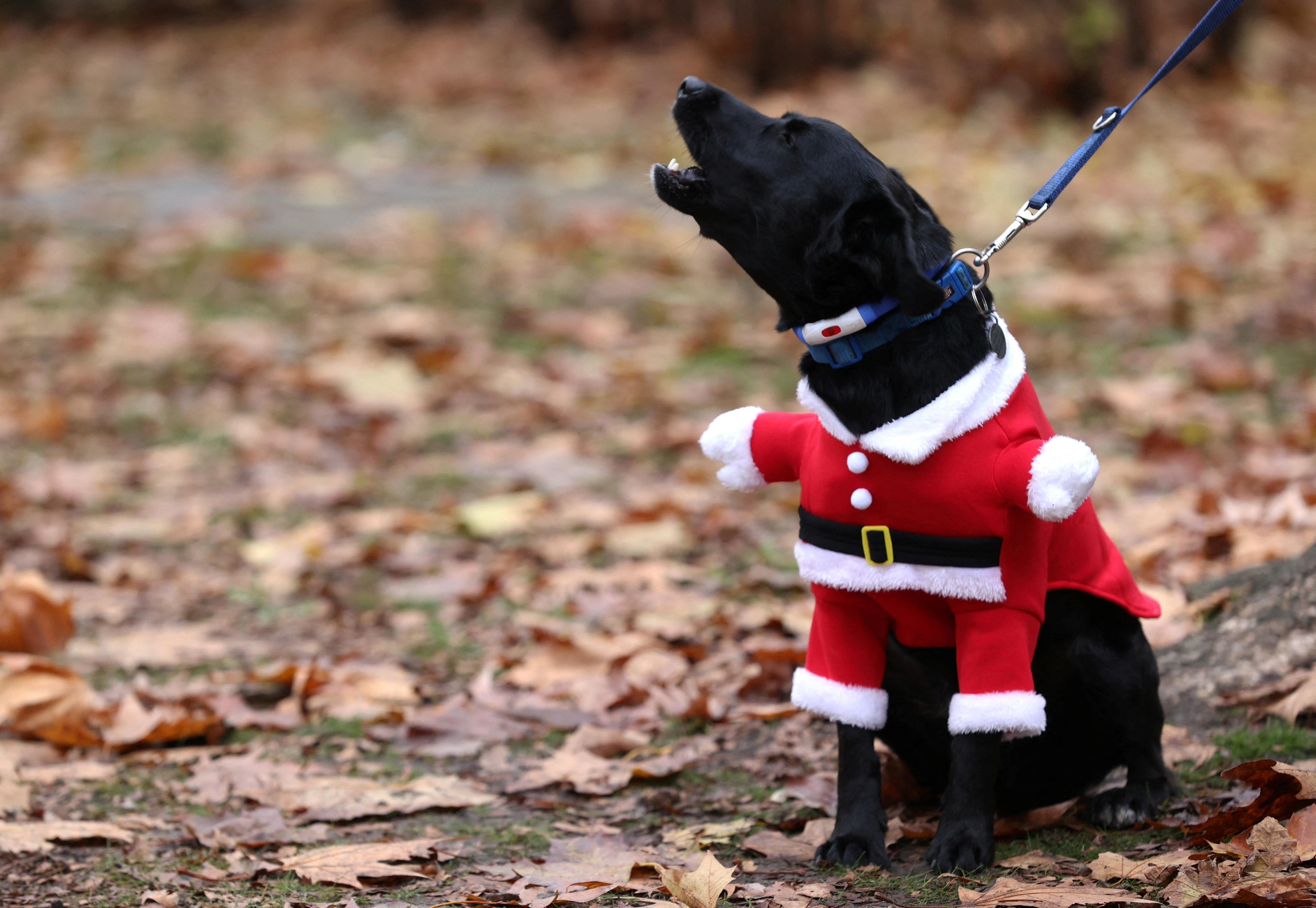 A dog dressed in a Santa Claus costume takes part in a Christmas walk in the City Park in Budapest, Hungary on December 7, 2024. (Photo by Bernadett Szabo/Reuters)