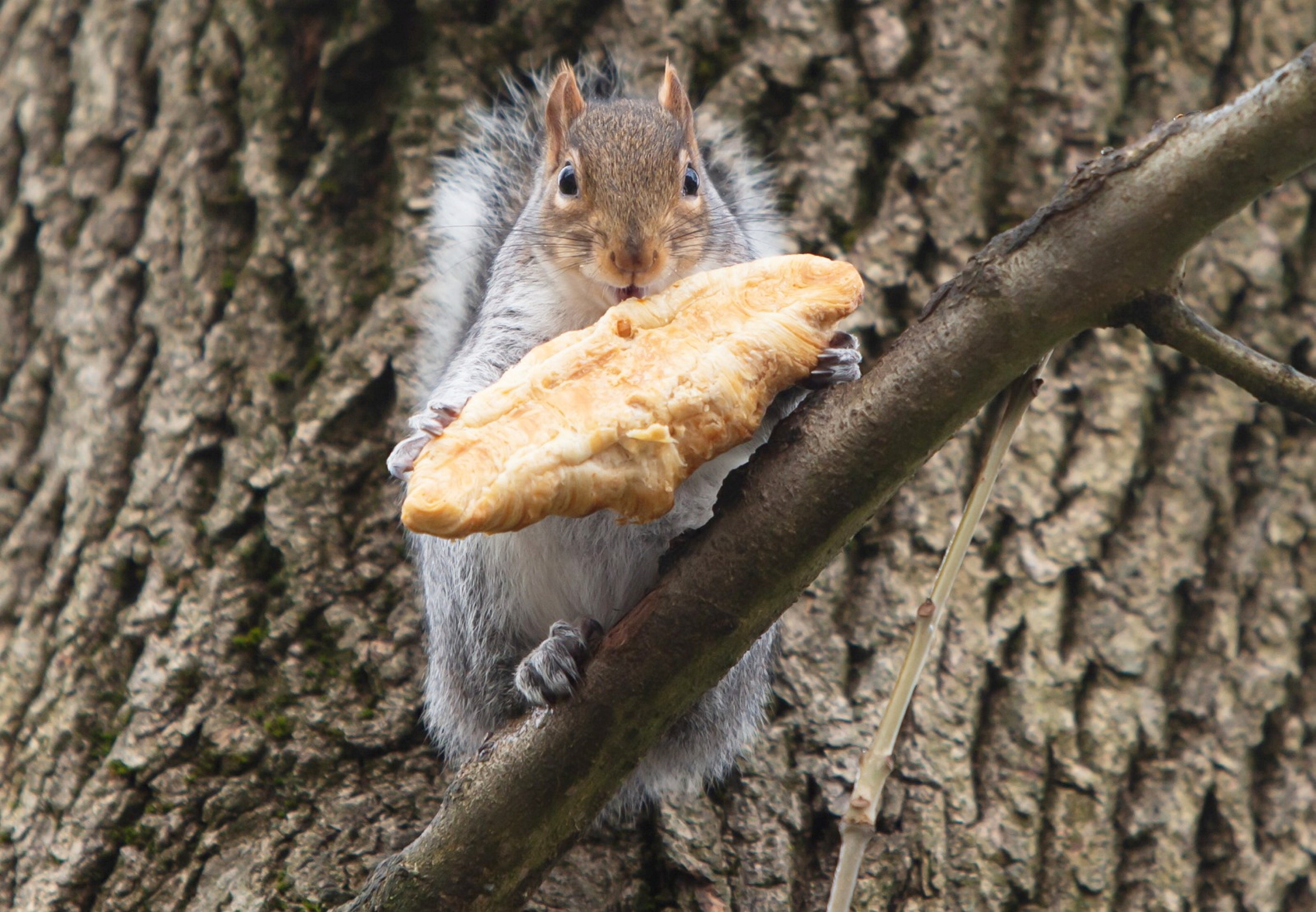 The squirrels of Glasgow’s well-heeled West End appear to be turning their noses up at nuts and fruits. This one was seen dining out on a full croissant on December 12, 2024. (Photo by Glasgow Times /South West News Service)