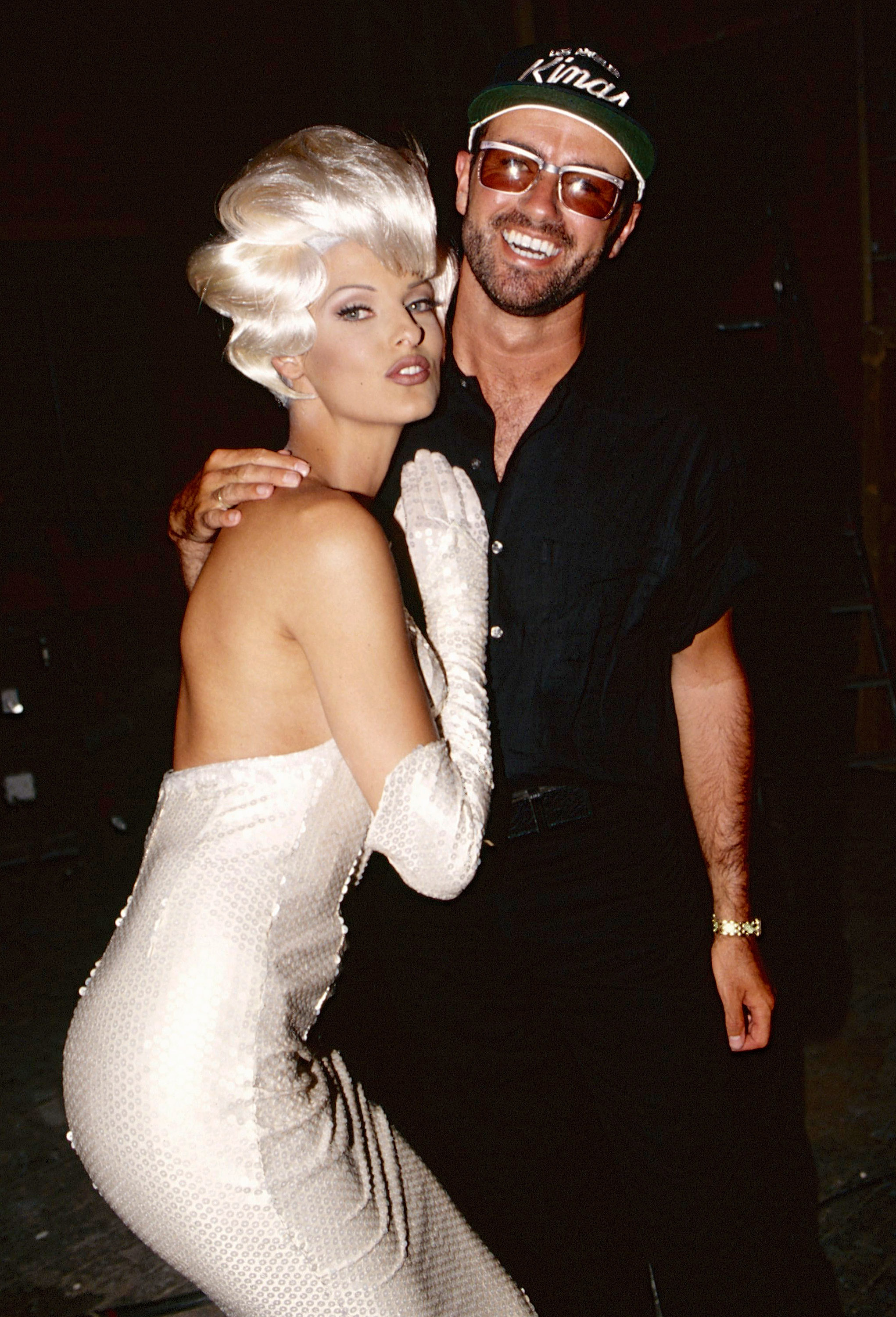 Canadian fashion model Linda Evangelista and English singer-songwriter George Michael during the “Too Funky” video shoot circa 1992 in Paris, France. (Photo by Kevin Mazur/Getty Images)