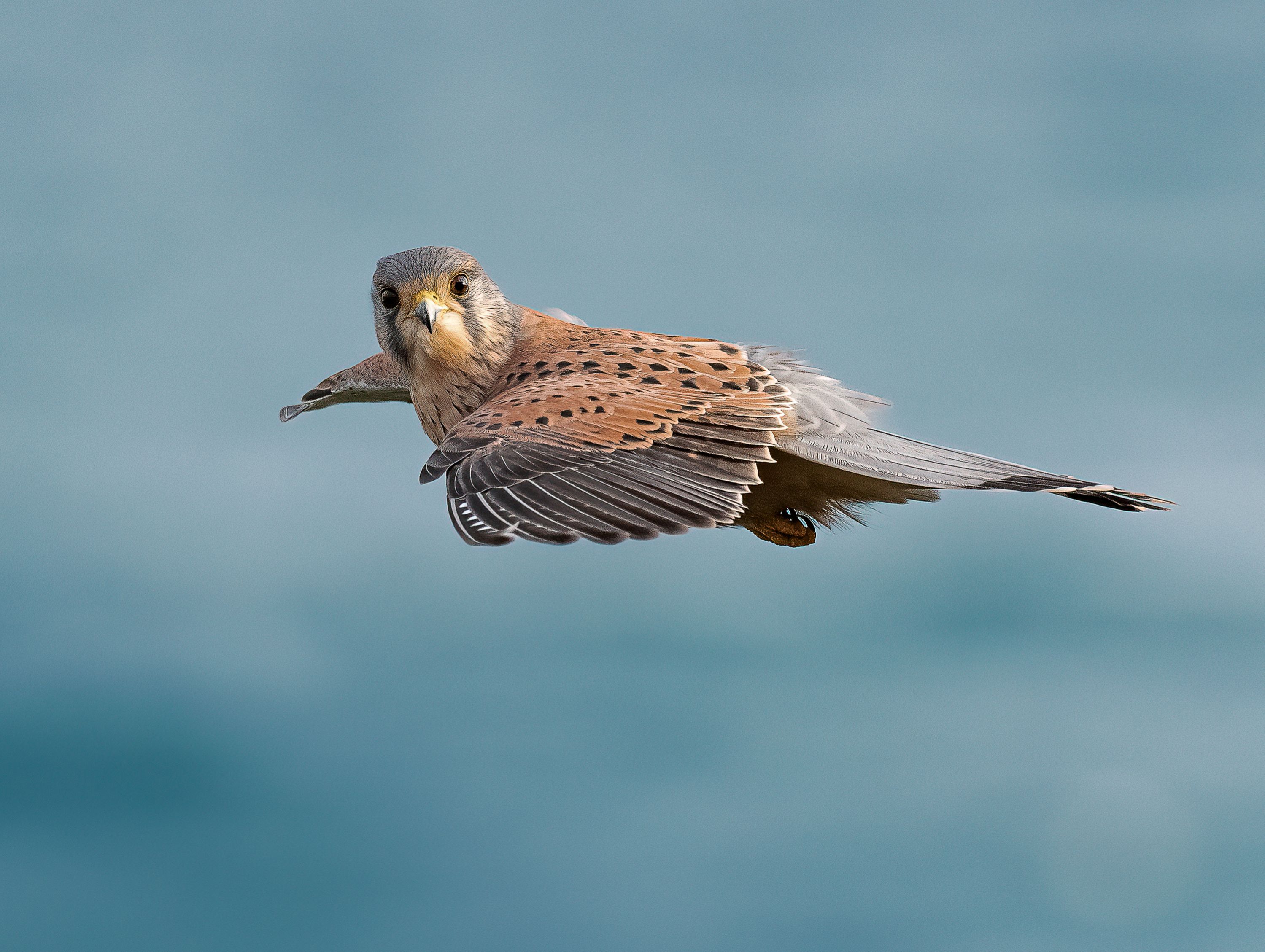 A kestrel gives a photographer a glance as it swooped past him in St Ives, Cornwal, UK in the first decade of December 2024. (Photo by Andy Maher/Animal News Agency)