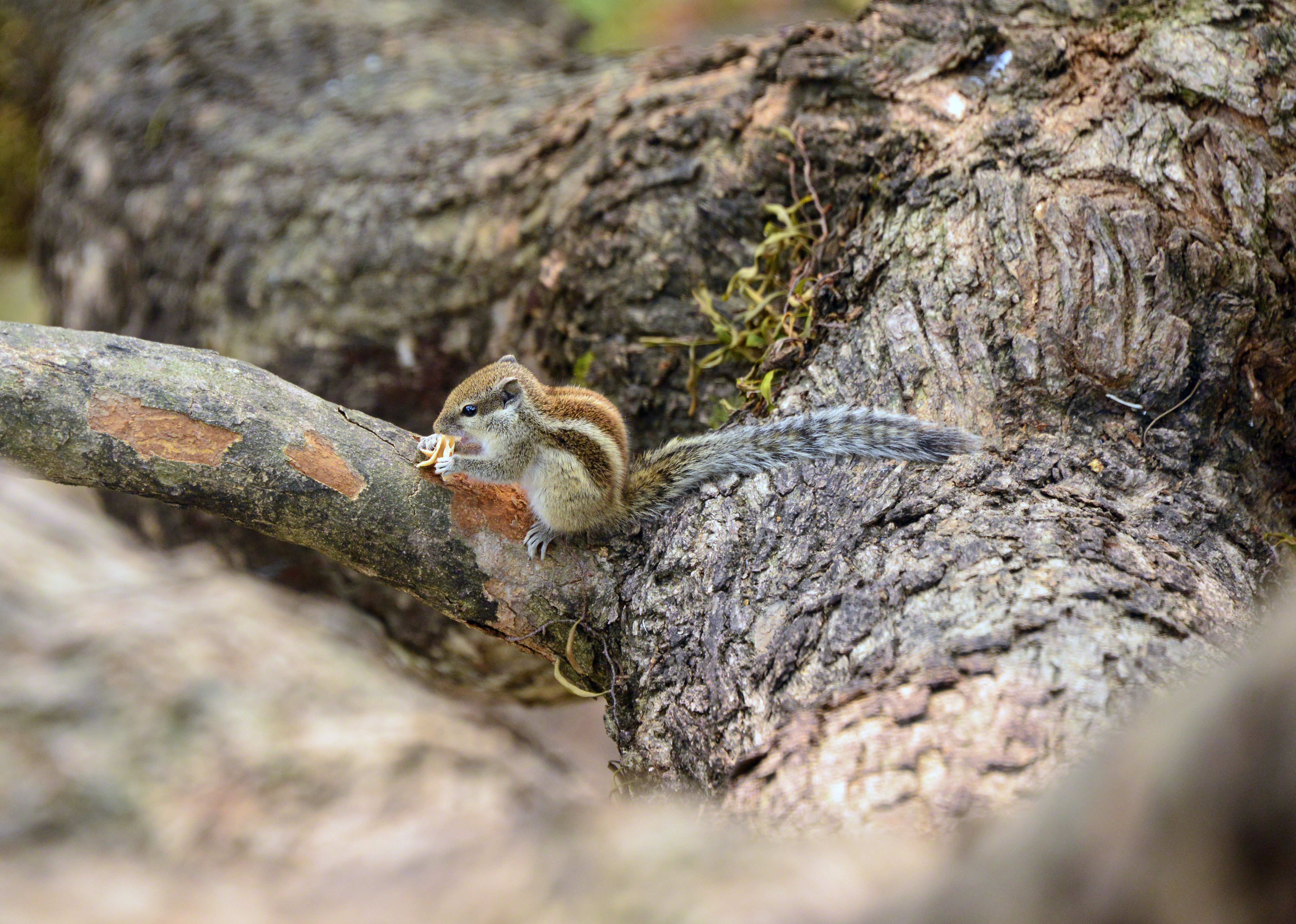 An Indian palm squirrel eats fruit on a tree in Siliguri, India on December 6, 2024. (Photo by Diptendu Dutta/NurPhoto/Rex Features/Shutterstock)