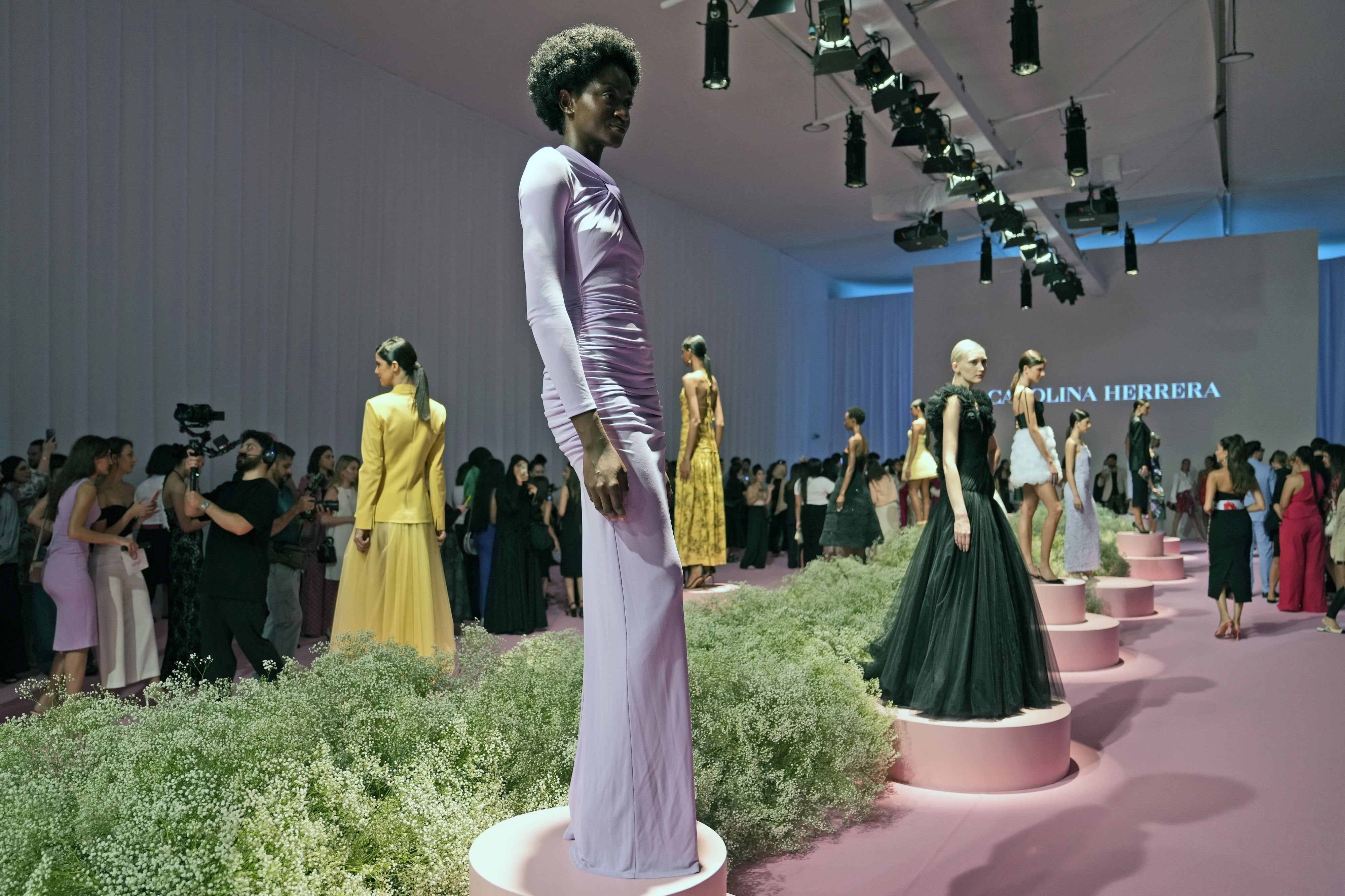 Models present the Carolina Herrera's Spring Summer 2024 Collections, during the Dubai Fashion Week at the Dubai Design District, in Dubai, United Arab Emirates, Monday, October 9, 2023. (Photo by Kamran Jebreili/AP Photo)