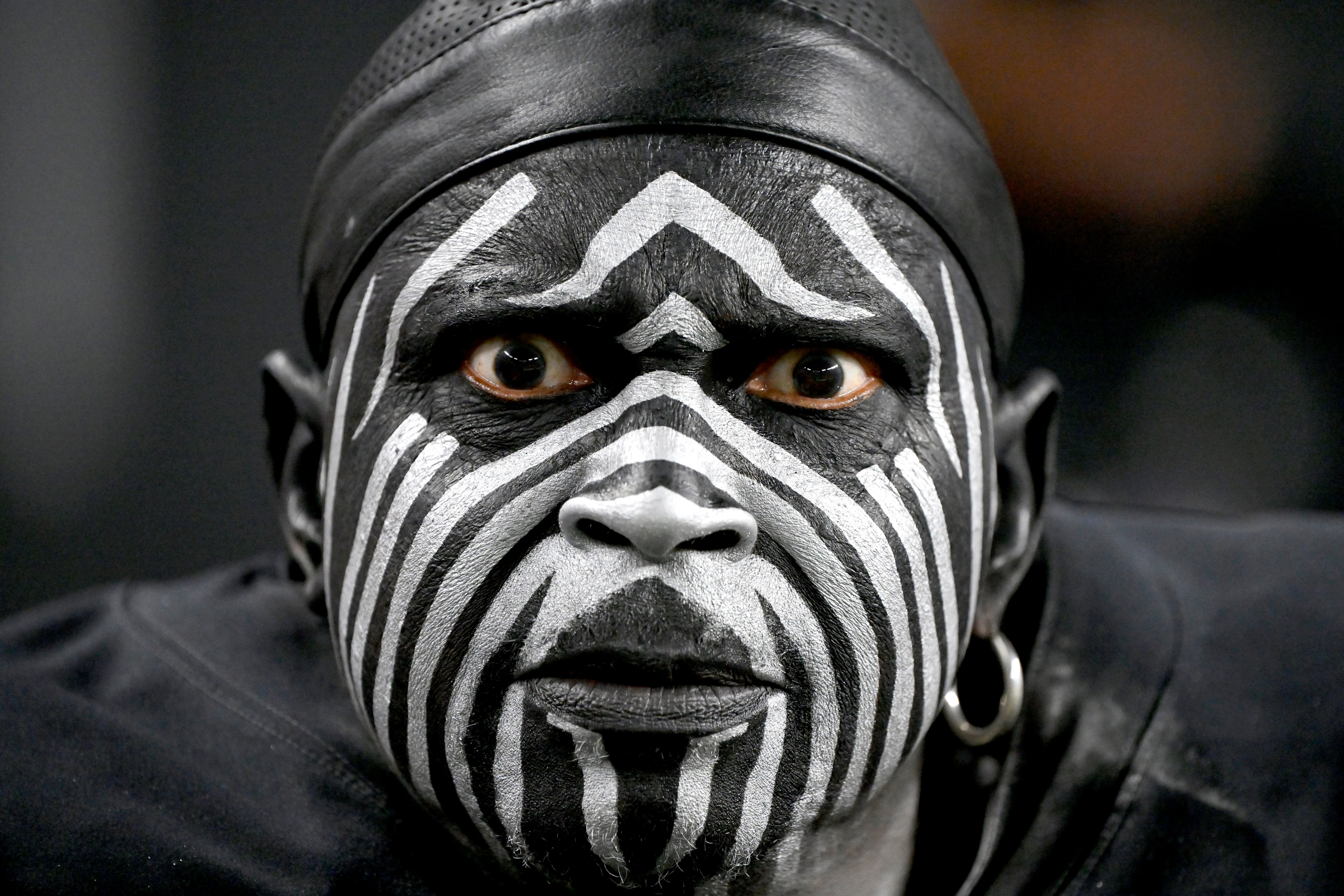 A Las Vegas Raiders fan watches warm ups prior to an NFL football game against the Atlanta Falcons, Monday, December 16, 2024, in Las Vegas. (Photo by David Becker/AP Photo)