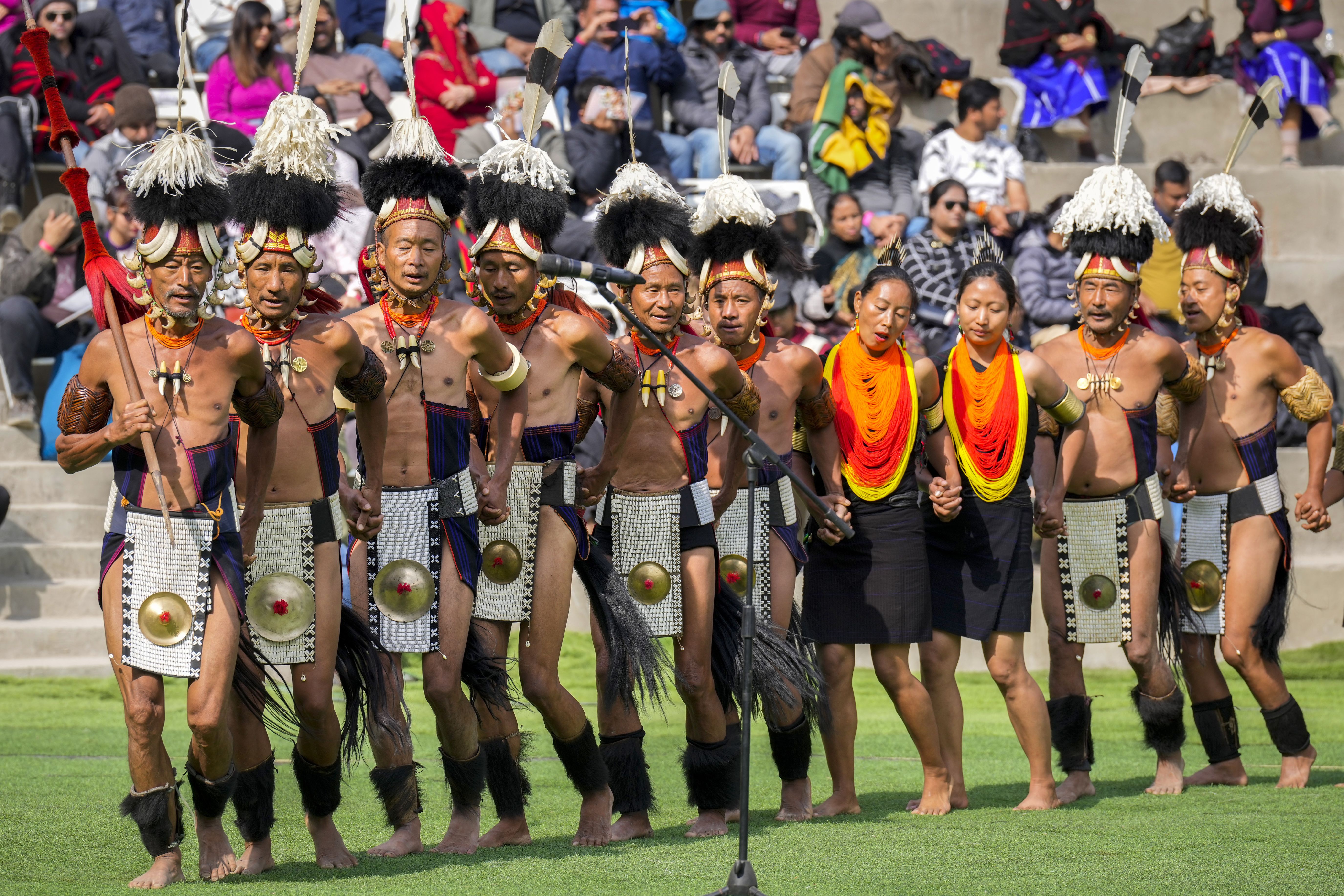 Indigenous Naga tribals dance during the Hornbill Festival in Kisama, on the outskirts of Kohima, capital of the northeastern Indian state of Nagaland, Tuesday, December 10, 2024. (Photo by Anupam Nath/AP Photo)