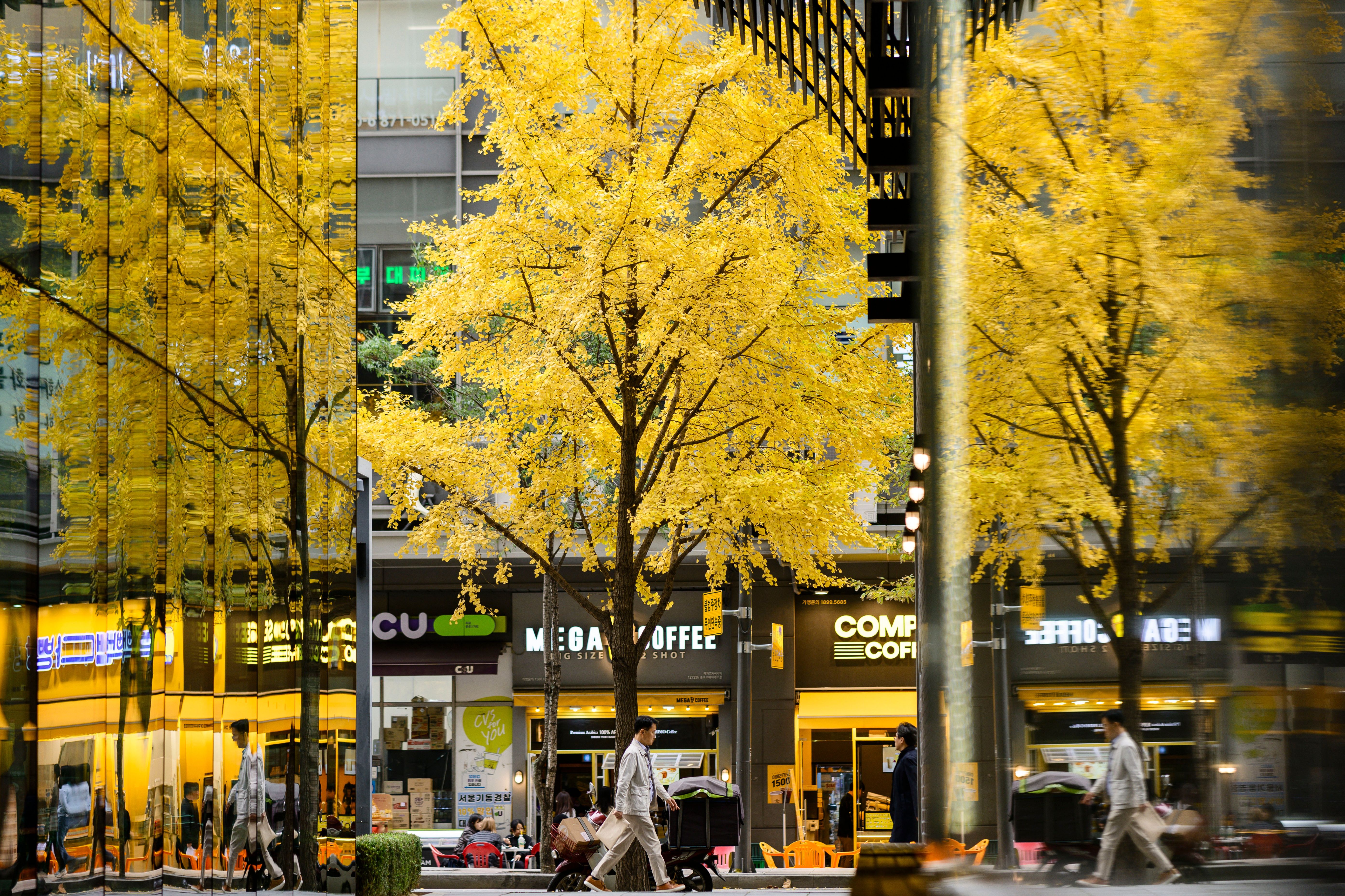 A man walks past a ginkgo tree with yellow autumn foliage in Seoul on November 14, 2024. The Seoul Metropolitan Government designated the ginkgo biloba as the capital’s official tree in 1971. (Photo by Anthony Wallace/AFP Photo)