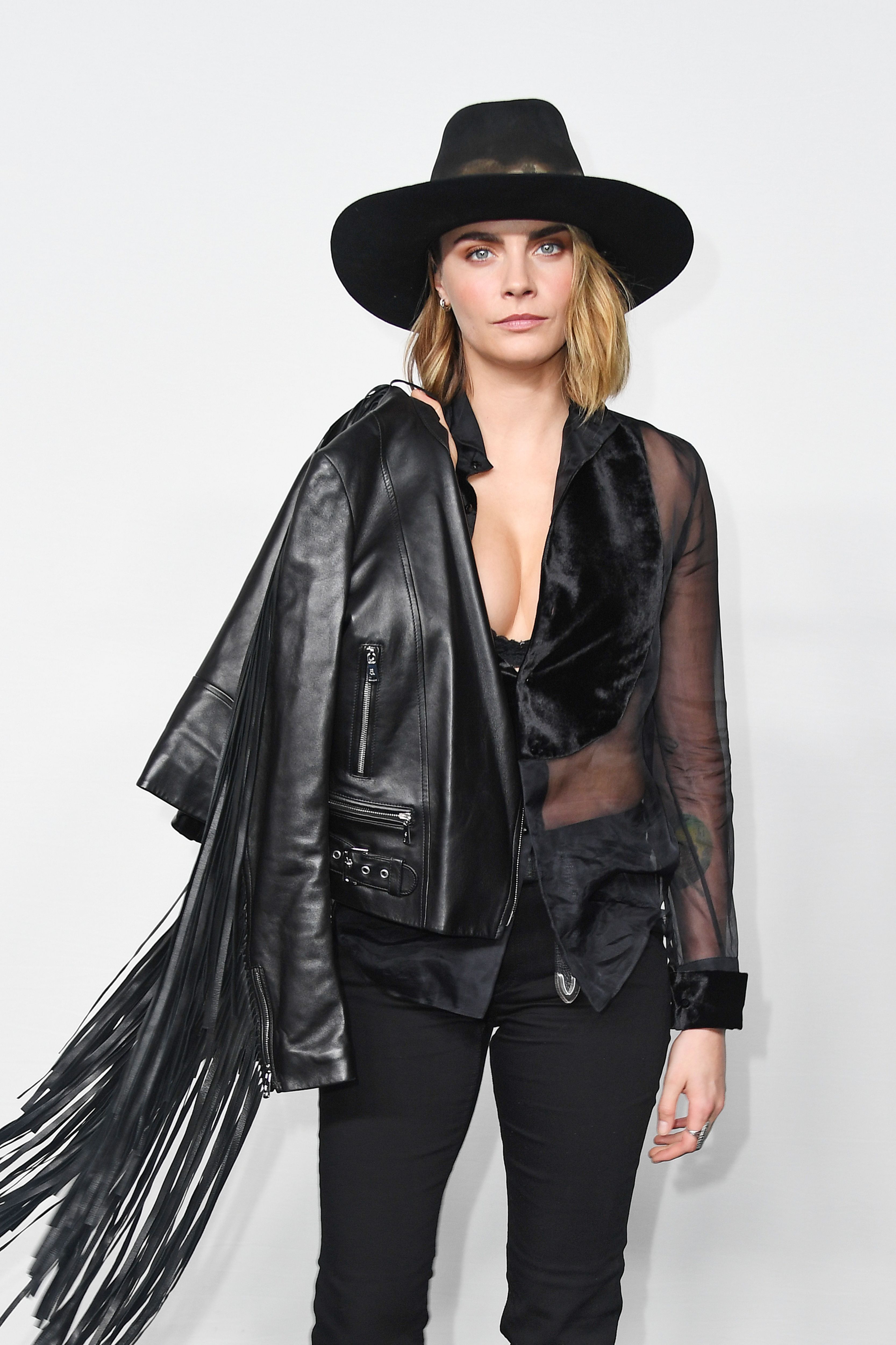 English model and actress Cara Delevingne attends the Ralph Lauren SS24 runway show during New York Fashion Week September 2023 at the Brooklyn Navy Yard on September 8, 2023 in Brooklyn, New York. (Photo by Jed Cullen/Dave Benett/Getty Images)