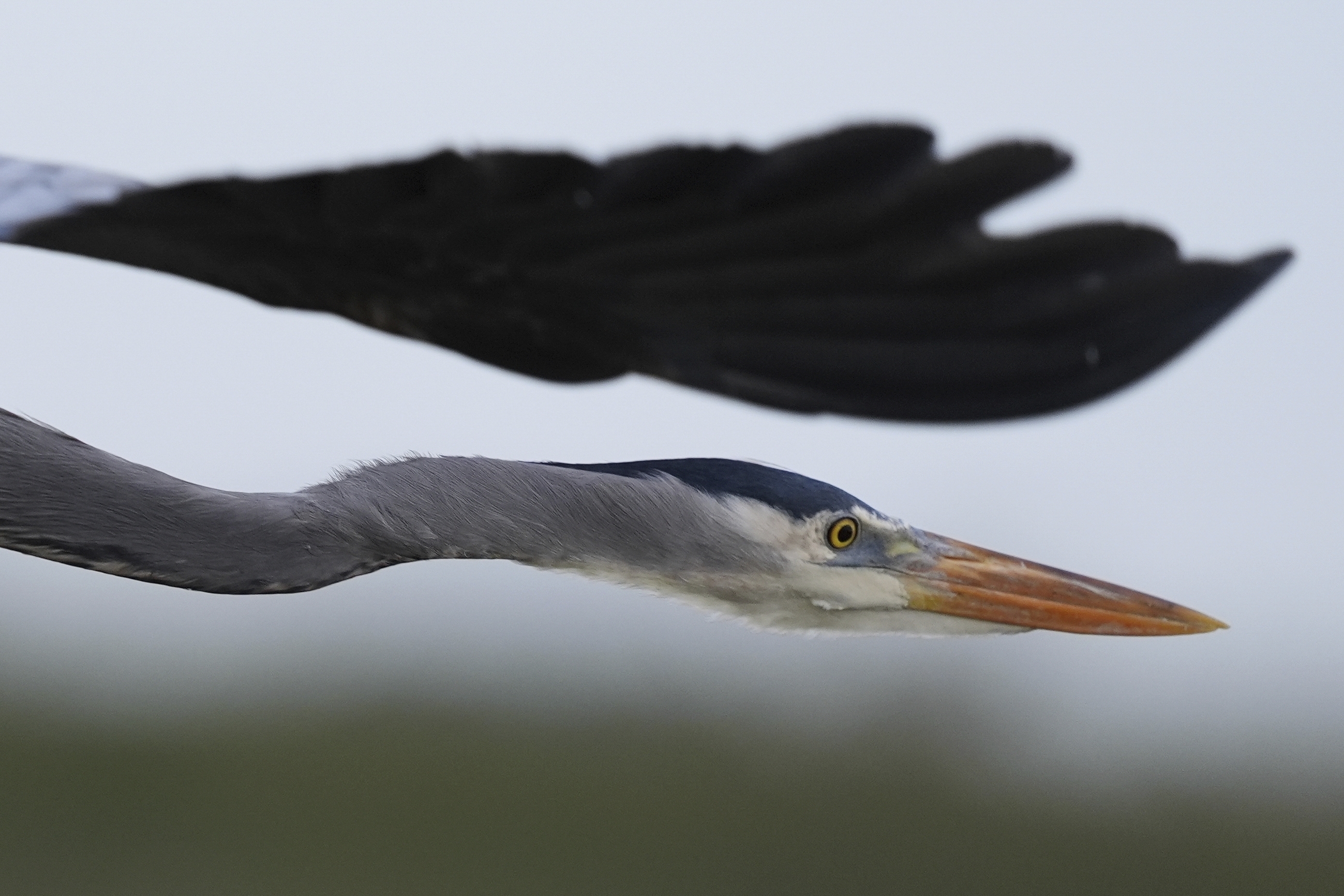 A great blue heron flies inside Florida's Everglades National Park, November 20, 2024. (Photo by Rebecca Blackwell/AP Photo)