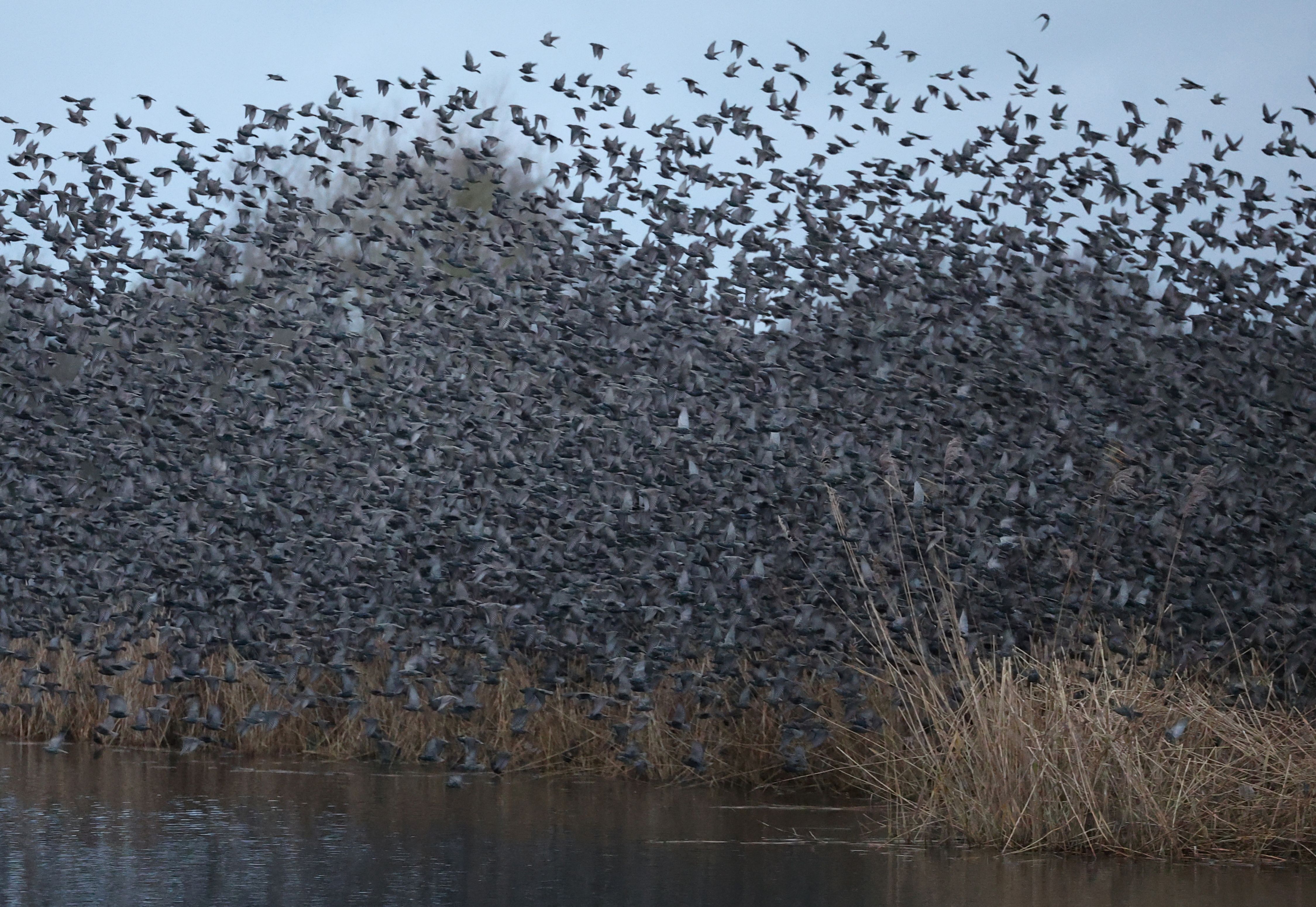 Thousands of starlings take off from their roosts at dawn, on the Somerset Levels near Glastonbury, Britain, on December 17, 2024. (Photo by Toby Melville/Reuters)
