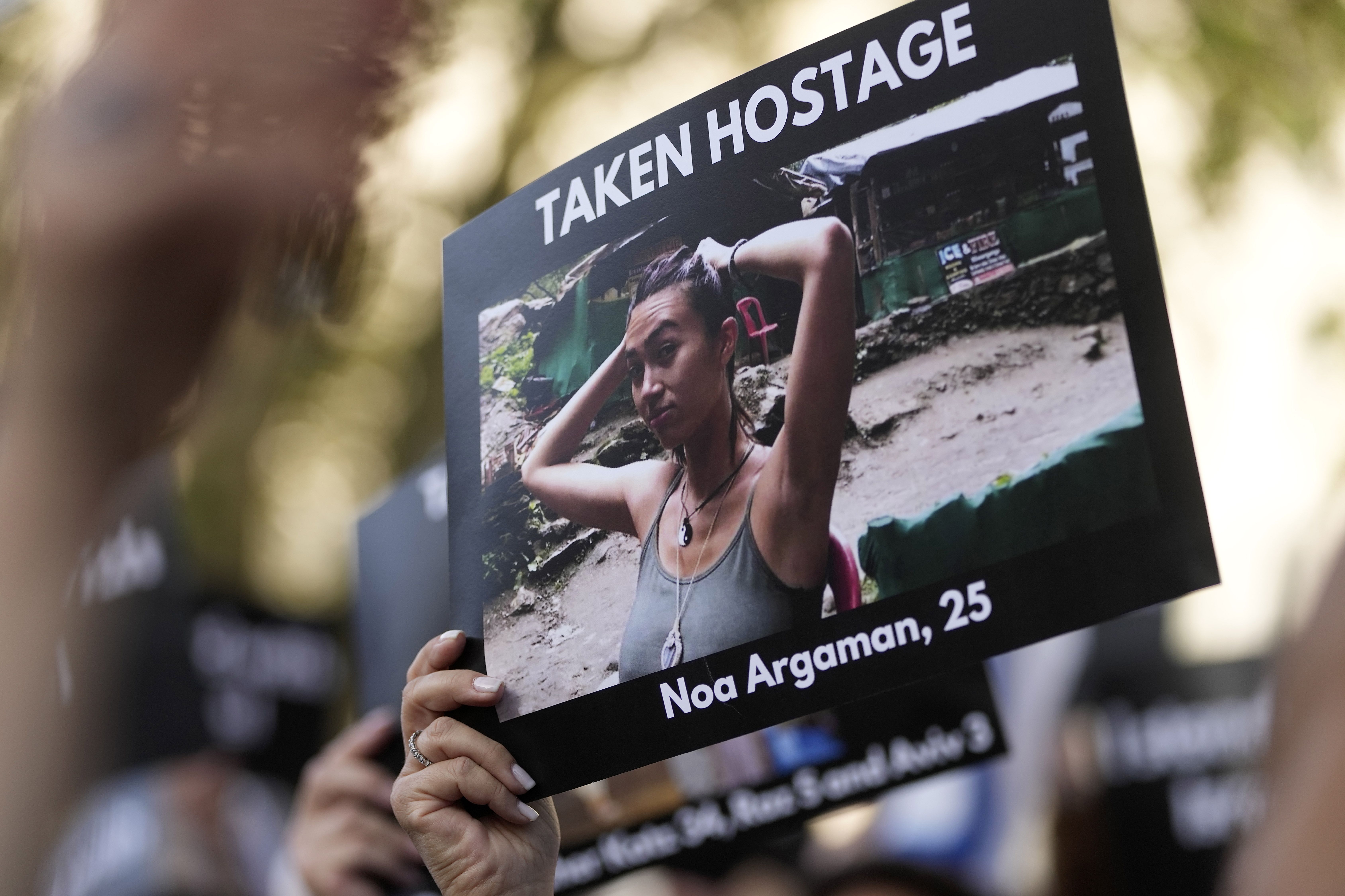 A woman holds a photo during the “Jewish Community Vigil” for Israel in London, Monday, October 9, 2023 two days after Hamas fighters launched an unprecedented, multi-front attack on Israel which killed more than 700 people. The militants blew through a fortified border fence and gunned down civilians and soldiers in Israeli communities along the Gaza frontier during a Jewish holiday. (Photo by Kin Cheung/AP Photo)