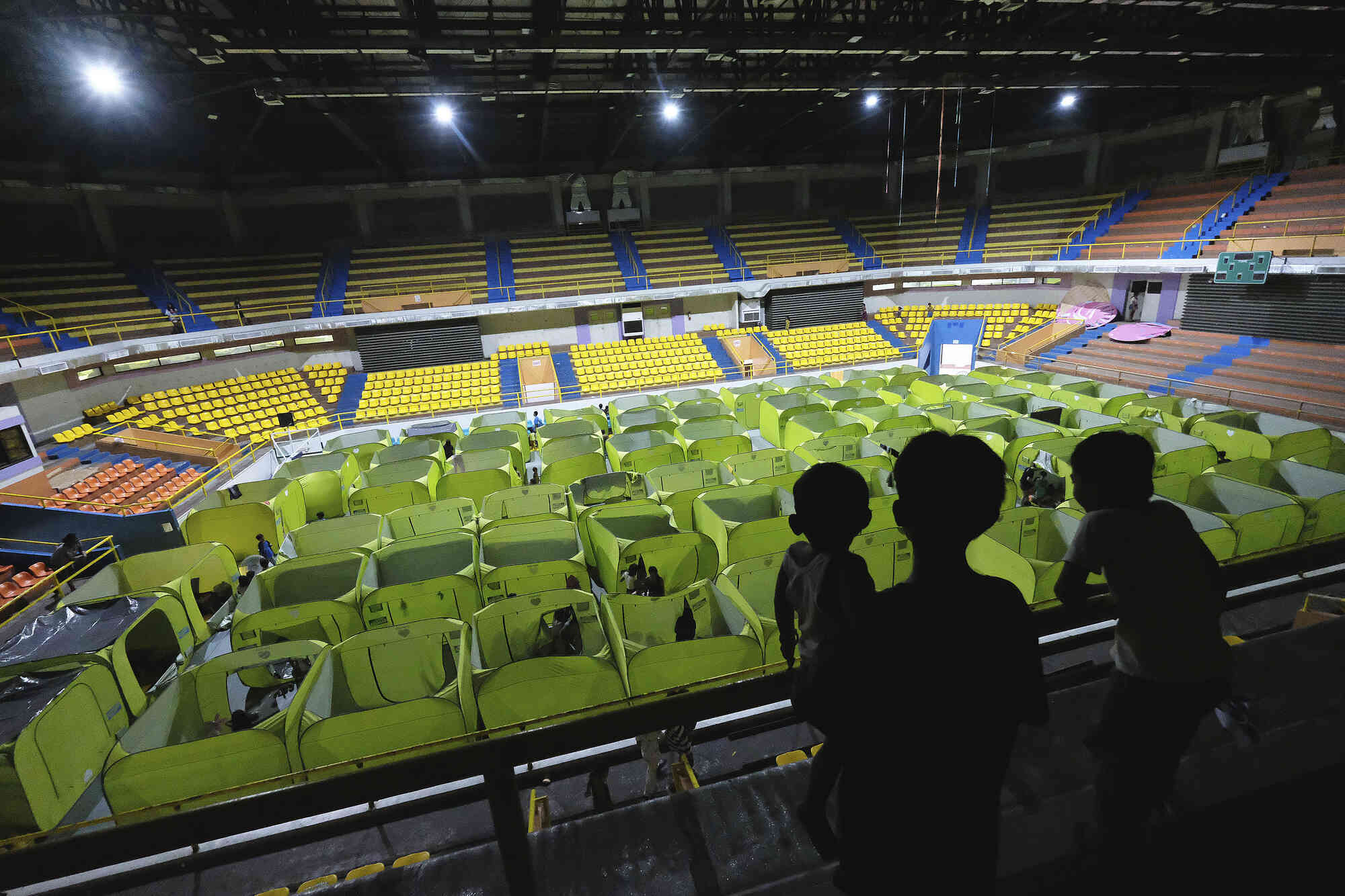Residents stay inside tents at the Ibalong Centrum for Recreation converted into an evacuation center as they brace for Typhoon Man-yi, locally known as Pepito, at Legazpi, Albay province, northeastern Philippines on Saturday November 16, 2024. (Photo by Zalrian Sayat/AP Photo)