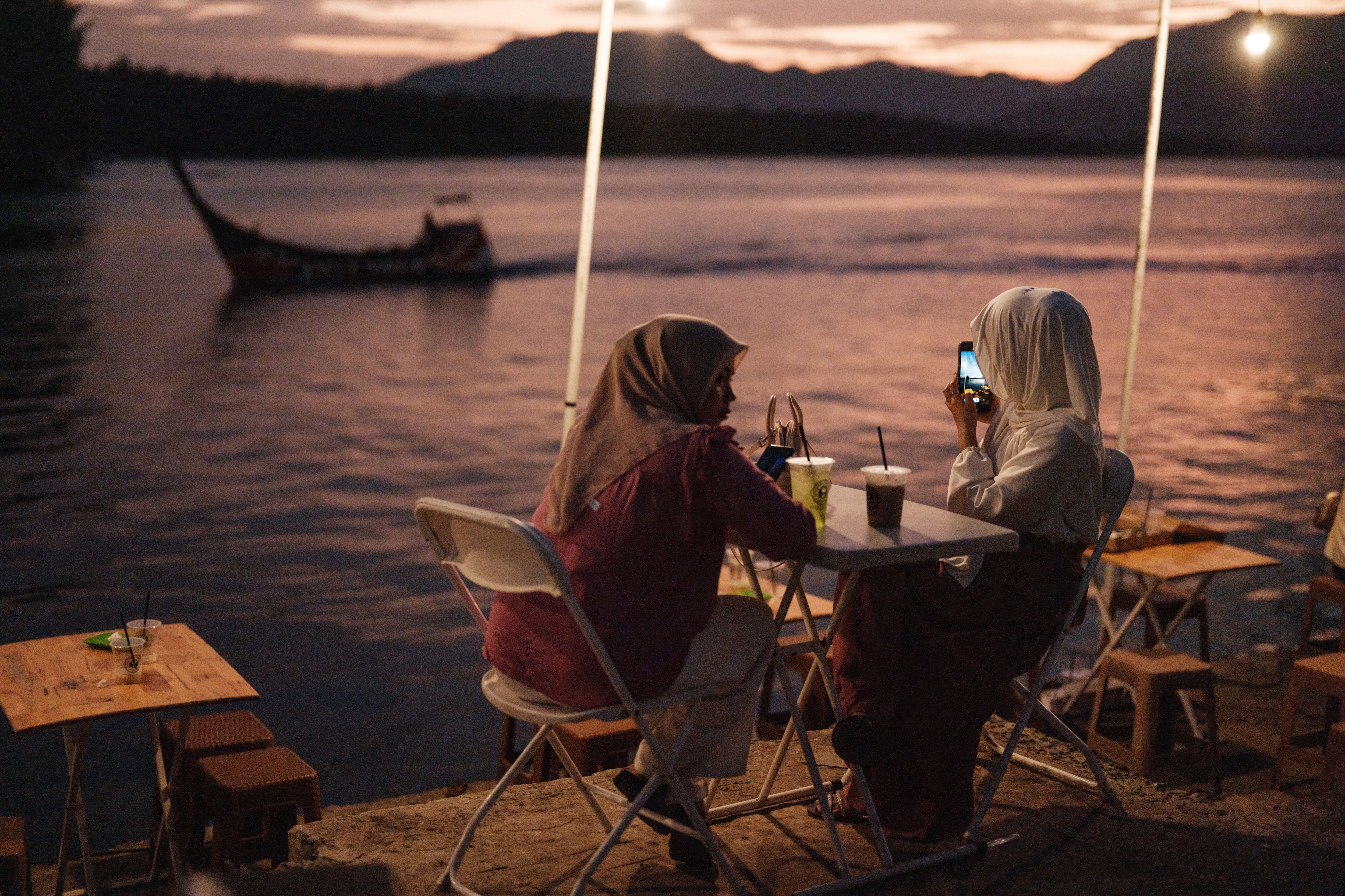 People take pictures as they enjoy an oceanfront cafeteria built on the site where all houses were destroyed by the 2004 Indian Ocean tsunami, in Banda Aceh, on December 25, 2024, on the eve of the tsunami's 20th anniversary. On December 26, 2004, a magnitude 9.1 earthquake struck the coast of Sumatra in Indonesia and triggered a huge tsunami across the Indian Ocean that killed more than 220,000 people in a dozen countries. (Photo by Yasuyoshi Chiba/AFP Photo)