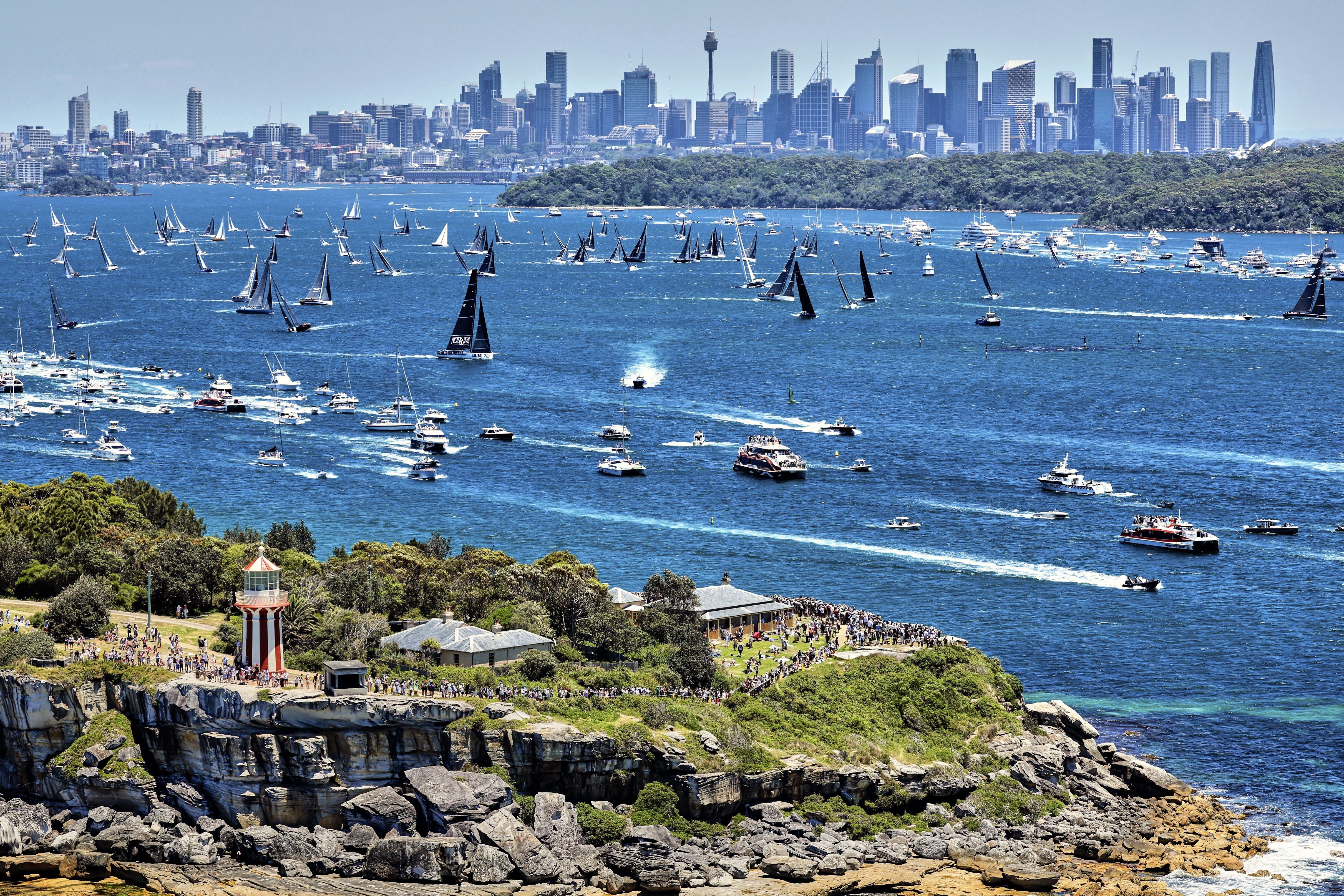 This handout image taken and received from Rolex on December 26, 2024 shows yachts competing at the start of the annual Sydney to Hobart yacht race on Boxing Day on Sydney Harbour. (Photo by Carlo Borlenghi/ROLEX/AFP Photo)