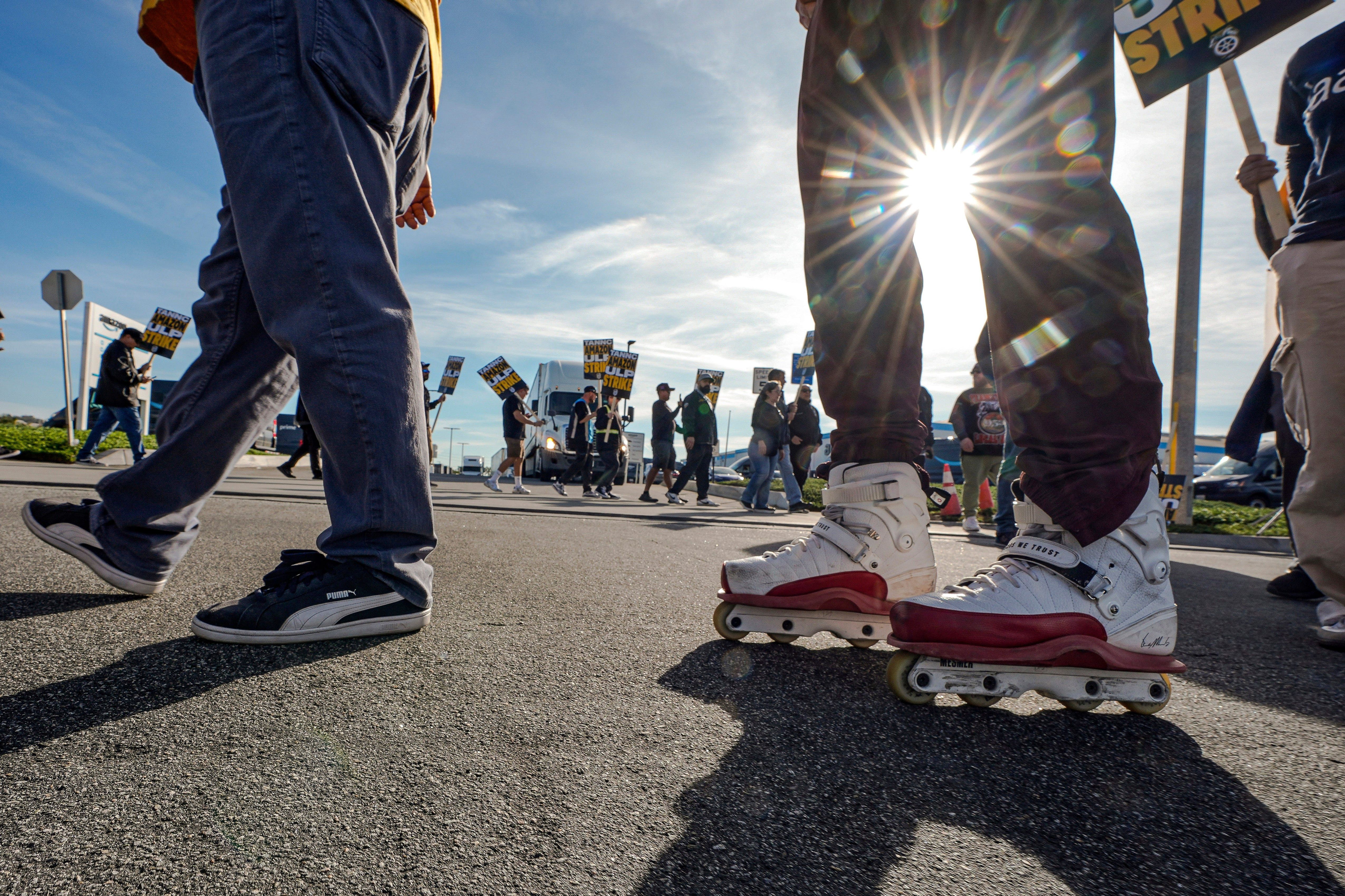 Amazon workers, on strike, picket outside an Amazon Fulfillment Center, on Thursday, December 19, 2024, in City of Industry, Calif. (Photo by USA Today)