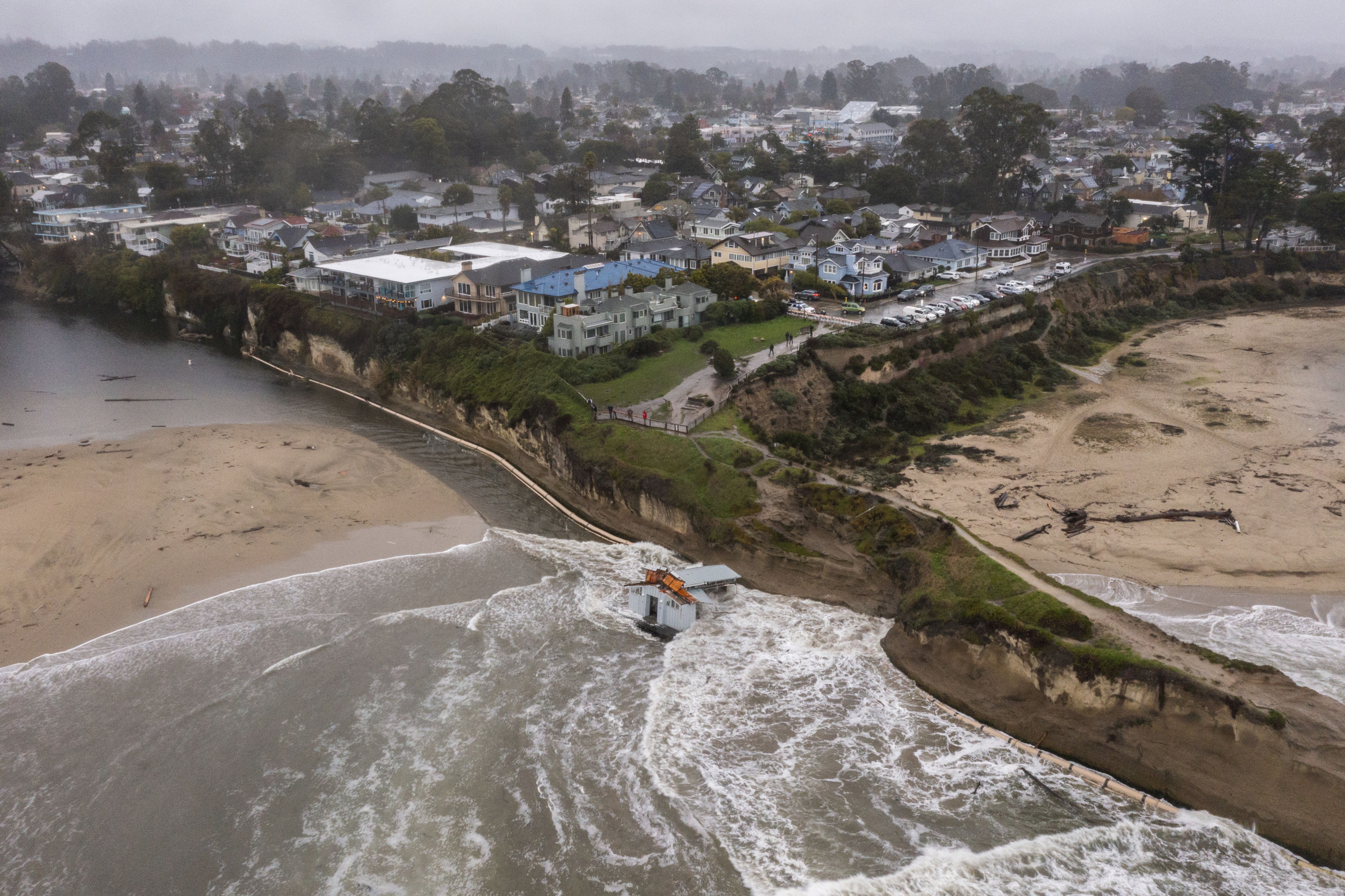 Remnants of a bathroom that fell off the wharf are seen at the mouth of the San Lorenzo River in Santa Cruz, Calif., Tuesday, December 24, 2024. (Photo by Nic Coury/AP Photo)