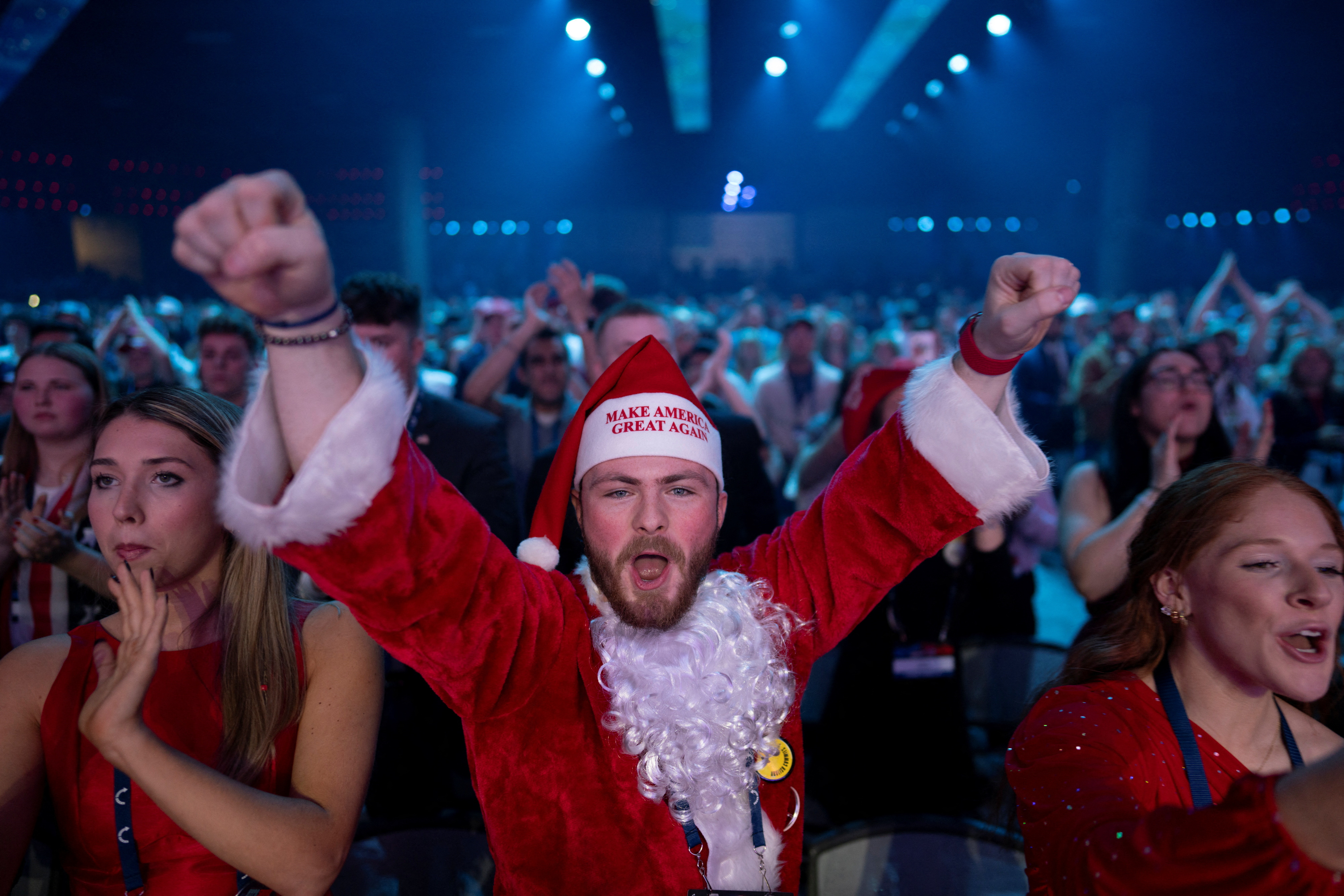 Attendees react during the AmericaFest 2024 conference sponsored by conservative group Turning Point in Phoenix, Arizona, U.S. December 19, 2024. (Photo by Cheney Orr/Reuters)