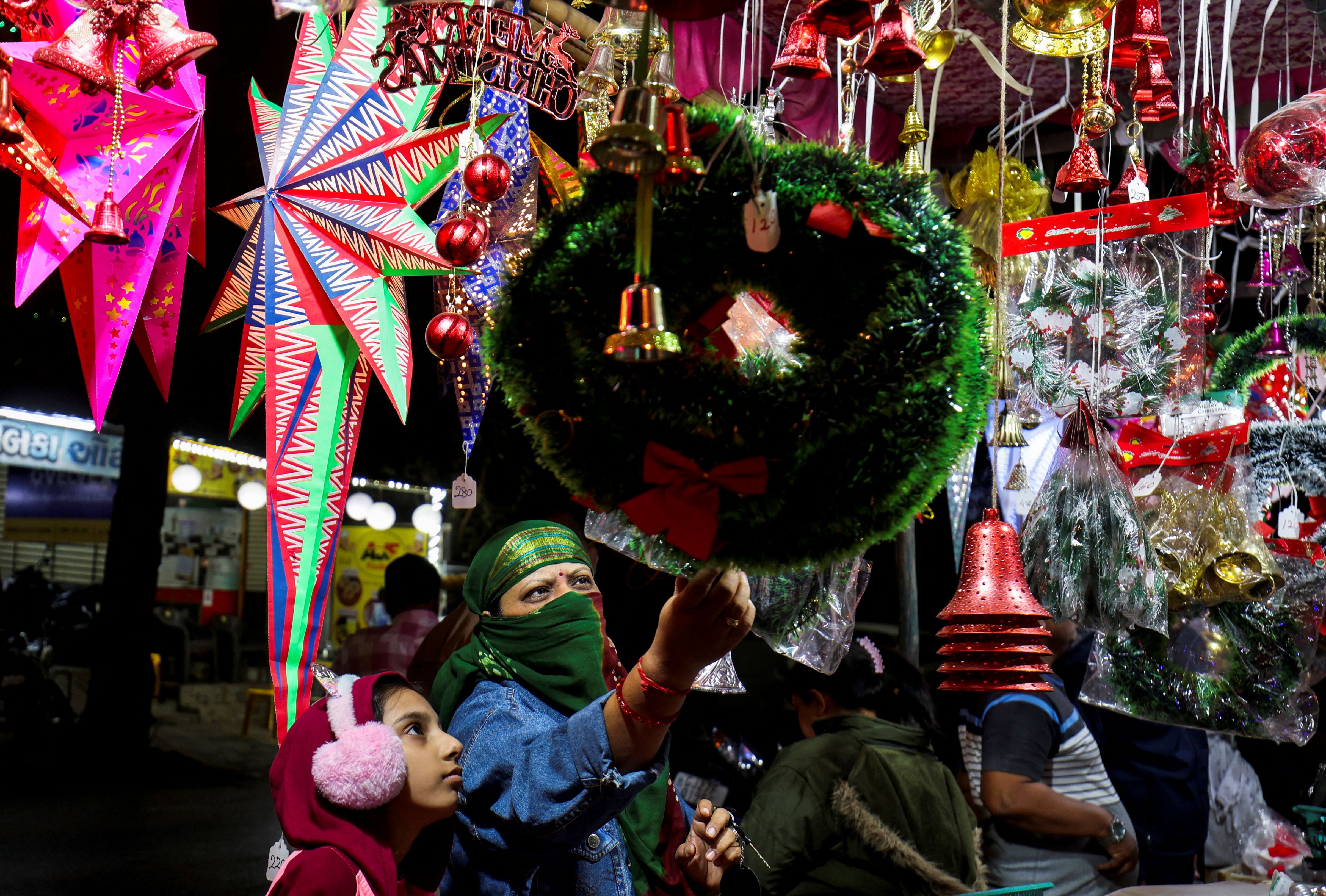 Women shop for Christmas decorations at a roadside market in Ahmedabad, India, on December 24, 2024. (Photo by Amit Dave/Reuters)
