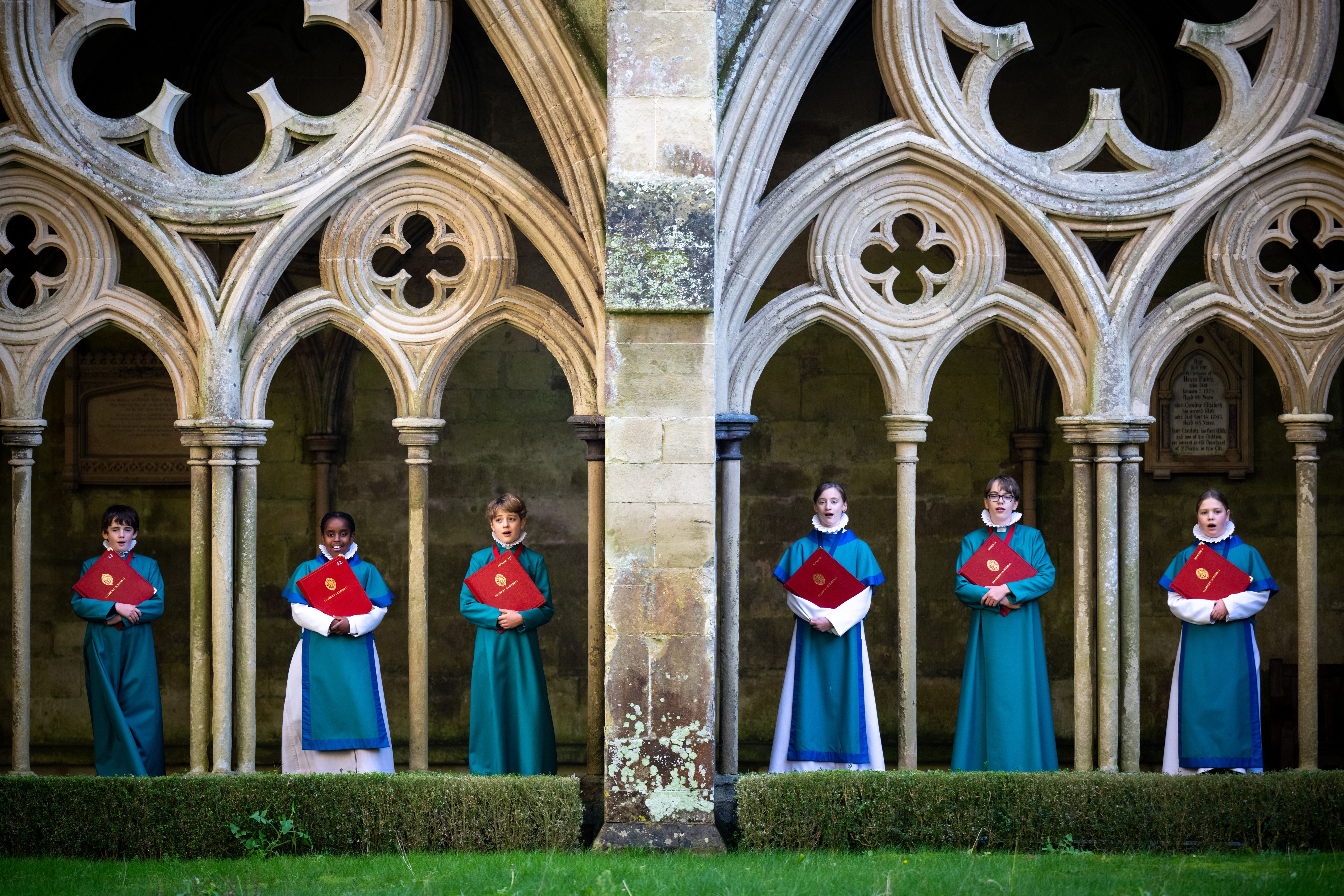 Choristers from Salisbury Cathedral Choir pose for photos during a photo call prior to their final practice ahead of the Christmas services, on December 21, 2024, in Salisbury, England. The choristers maintain an unbroken tradition of choral music in Salisbury that stretches back over 800 years in the present Cathedral, and for a further 200 years before that at Old Sarum. (Photo by Finnbarr Webster/Getty Images)