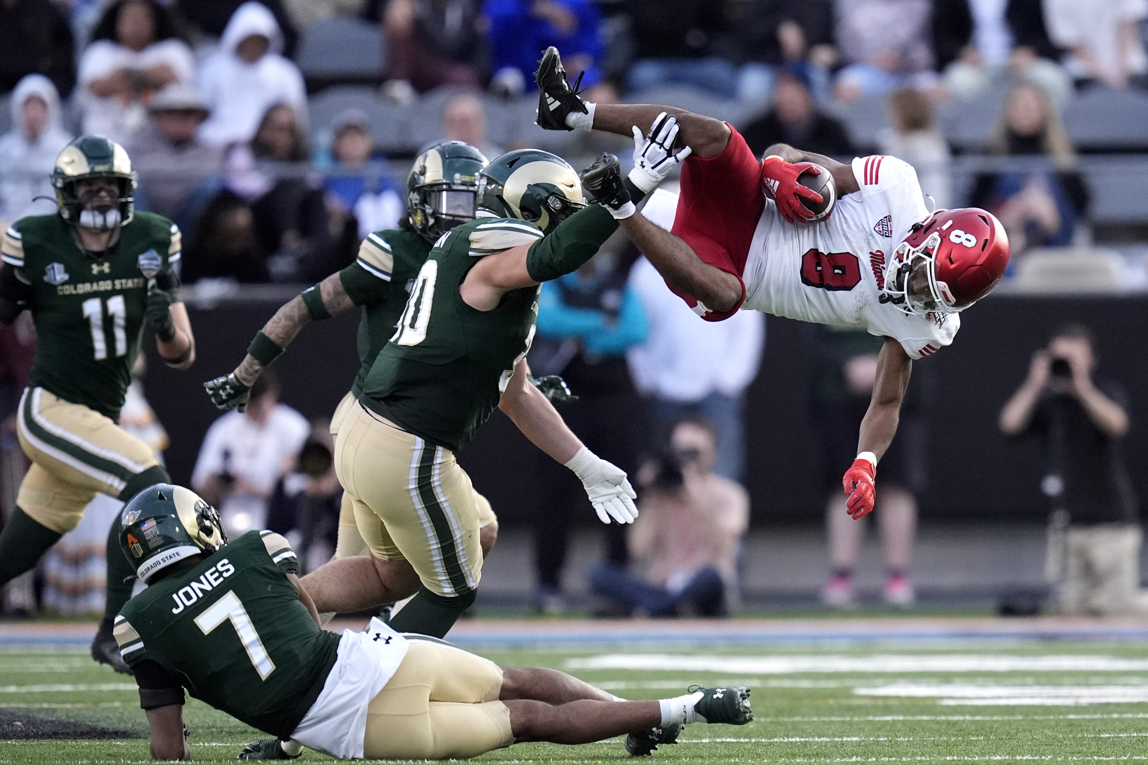 Kevin Davis #8 of the Miami (Ohio) RedHawks gets flipped in the air while running the football against the Colorado State University Rams during the second half of the Snoop Dogg Arizona Bowl at Arizona Stadium on December 28, 2024 in Tucson, Arizona. (Photo by Patrick Mulligan/Getty Images)