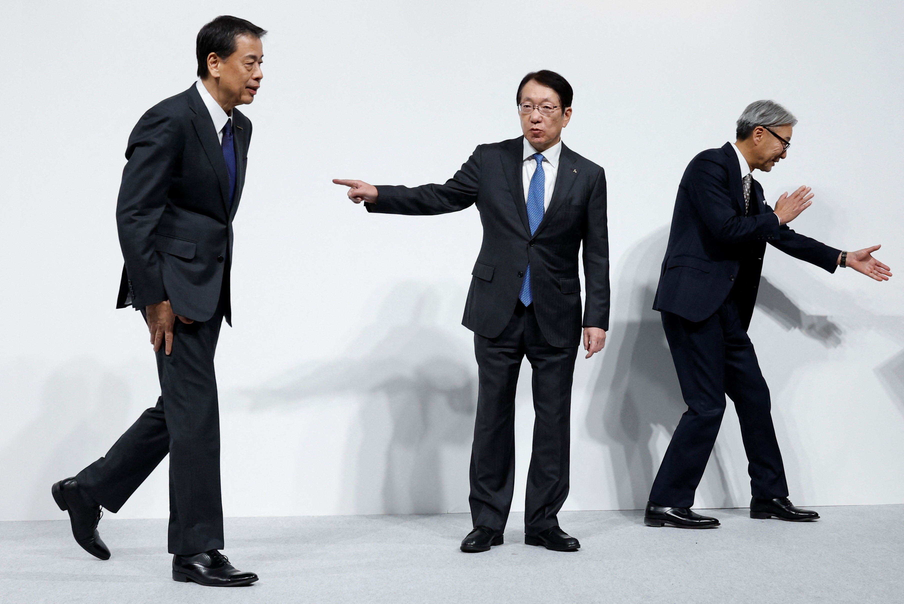 Makoto Uchida, Director, Representative Executive Officer, President and CEO of Nissan Motor Corporation, Toshihiro Mibe, Director, President and Representative Executive Officer of Honda and Takao Kato, Director, Representative Executive Officer, President & CEO of Mitsubishi Motors, attend a joint press conference on their merger talks, in Tokyo, Japan, on December 23, 2024. (Photo by Kim Kyung-Hoon/Reuters)