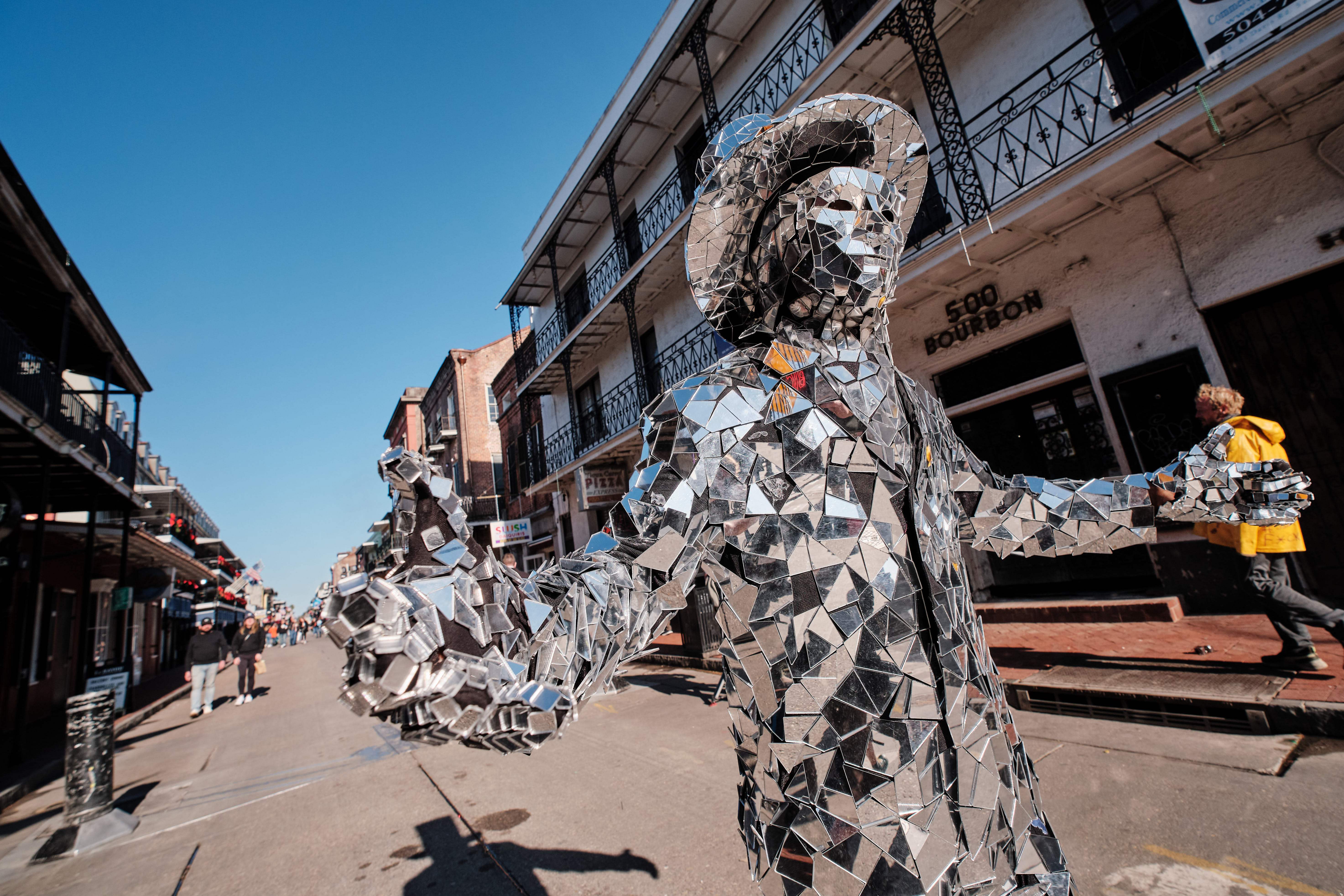 A street performer walks Bourbon Street after it is reopened to the public in New Orleans, Louisiana, USA, 02 January 2025. At least 15 people are dead and 35 injured after the driver of a white pickup truck slammed into a crowd of people on Bourbon Street on 01 January 2025 and then opened fire with a gun. The FBI identified the driver as Shamsud-Din Jabbar, a US citizen from Texas and Army veteran. He was killed in a shootout with police. (Photo by Dan Anderson/EPA/EFE)