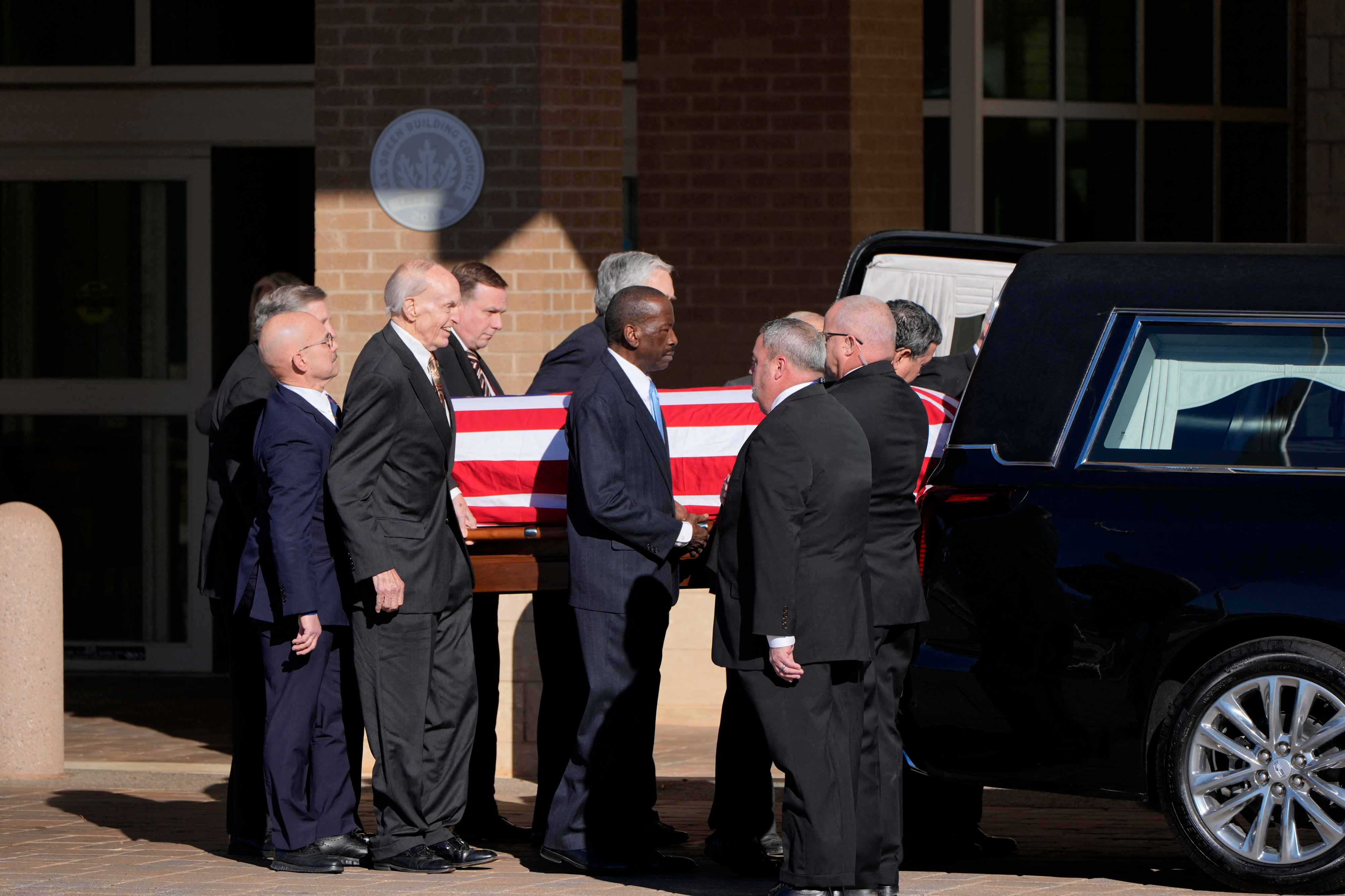 Former and current US Secret Service agents assigned to the Carter detail, move the flag-draped casket of former President Jimmy Carter, at Phoebe Sumter Medical Center in Americus, Ga., Saturday, January 4, 2025. Carter, the 39th President of the United States, died at the age of 100 on December 29, 2024 at his home in Plains, Georgia. (Photo by Alex Brandon/Pool via AFP Photo)