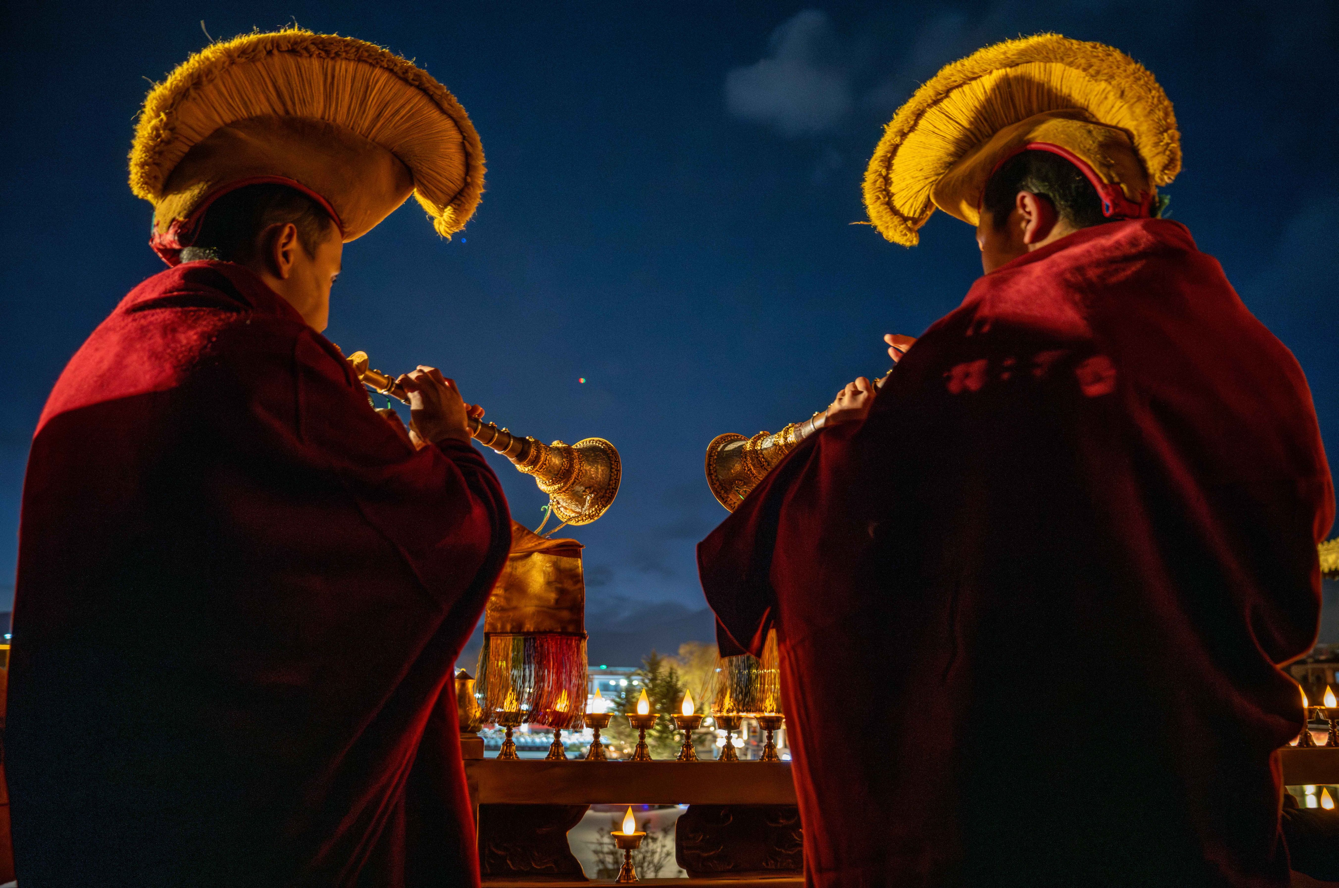 Monks participate in a ceremony at Jokhang Temple in Lhasa, the capital of southwest China's Xizang Autonomous Region, December 25, 2024. People of the Tibetan ethnic group lit butter lamps and prayed through the night in the annual Butter Lamp Festival commemorating Tsong Khapa, a master of Tibetan Buddhism. (Photo by Xinhua News Agency/Rex Features/Shutterstock)