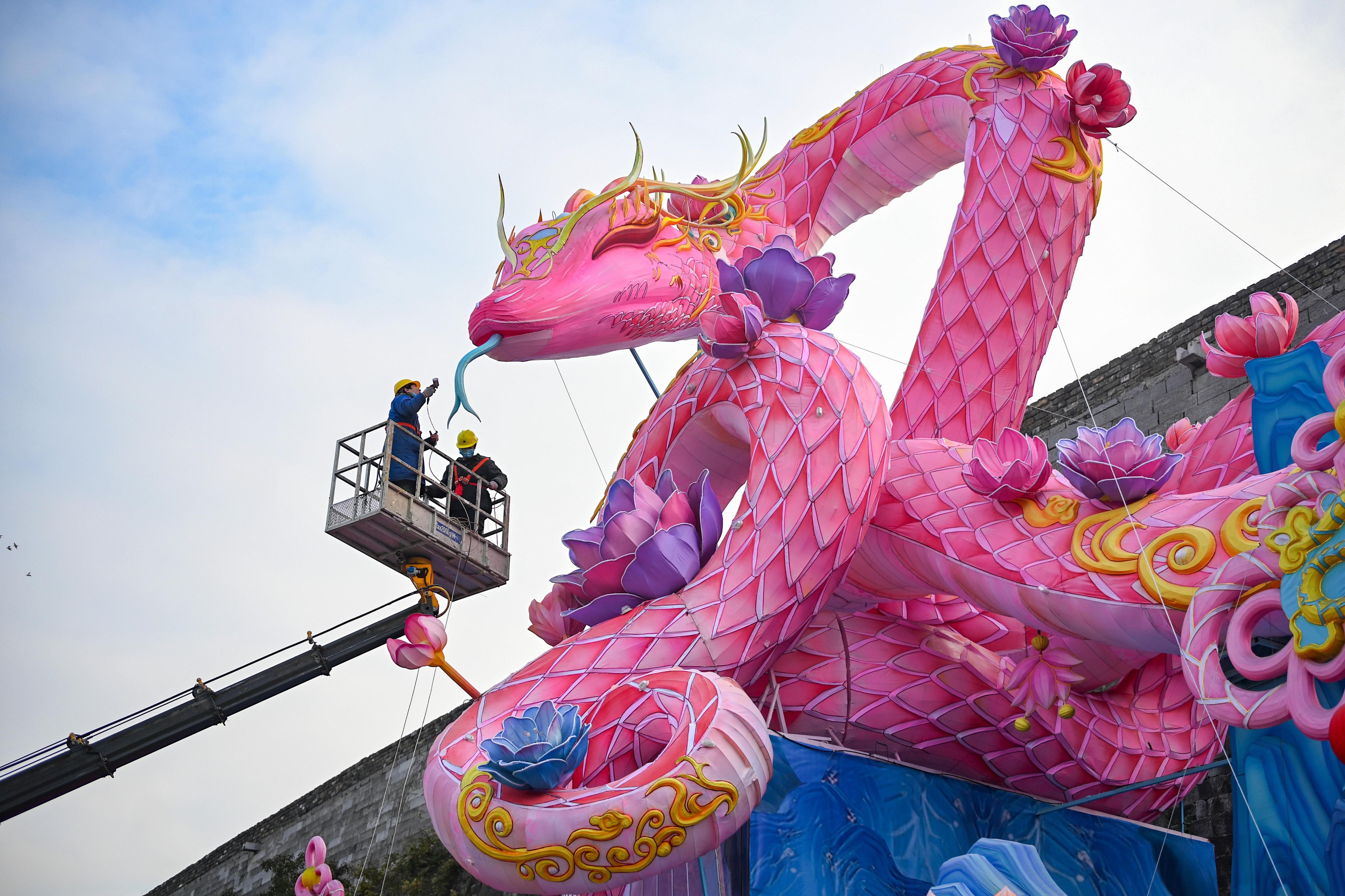 Lanterns for the Year of the Snake are installed under the Ming City Wall in Nanjing City in Jiangsu Province, east China on December 26, 2024. (Photo by Splash News and Pictures)
