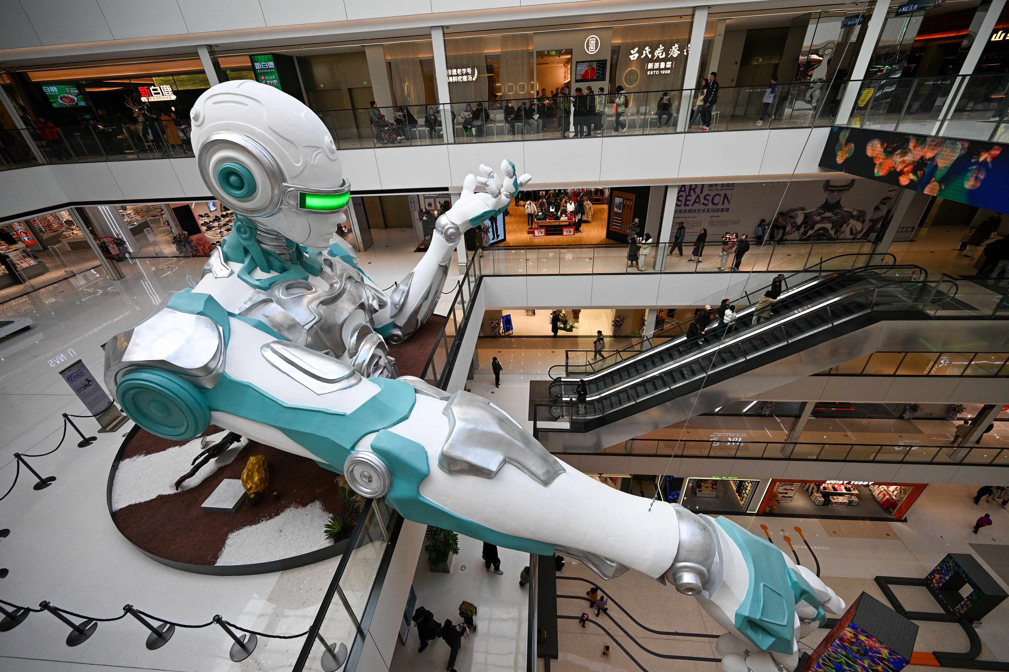 A multimedia art installation named Envoy of Intelligence in a shopping mall in Nanjing in east China's Jiangsu province Monday, December 30, 2024. (Photo by Fang Dongxu/Avalon)